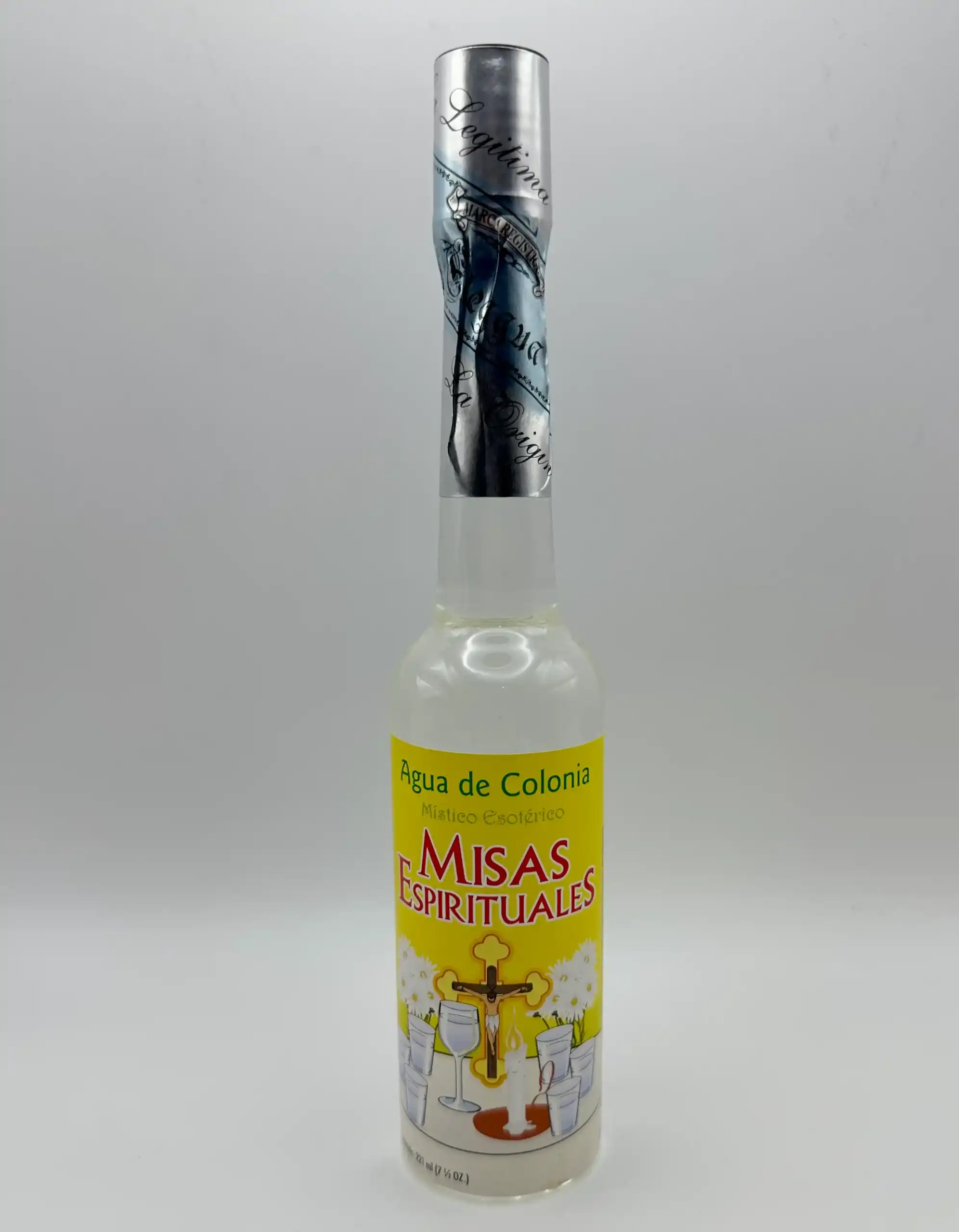 El agua de colonia Misas Espirituales se utiliza para purificar al altar y realizar rituales de purificación de objetos o herramientas mágicas.  Es Una limpieza completa de malas energias , males de ojo y brujerías.