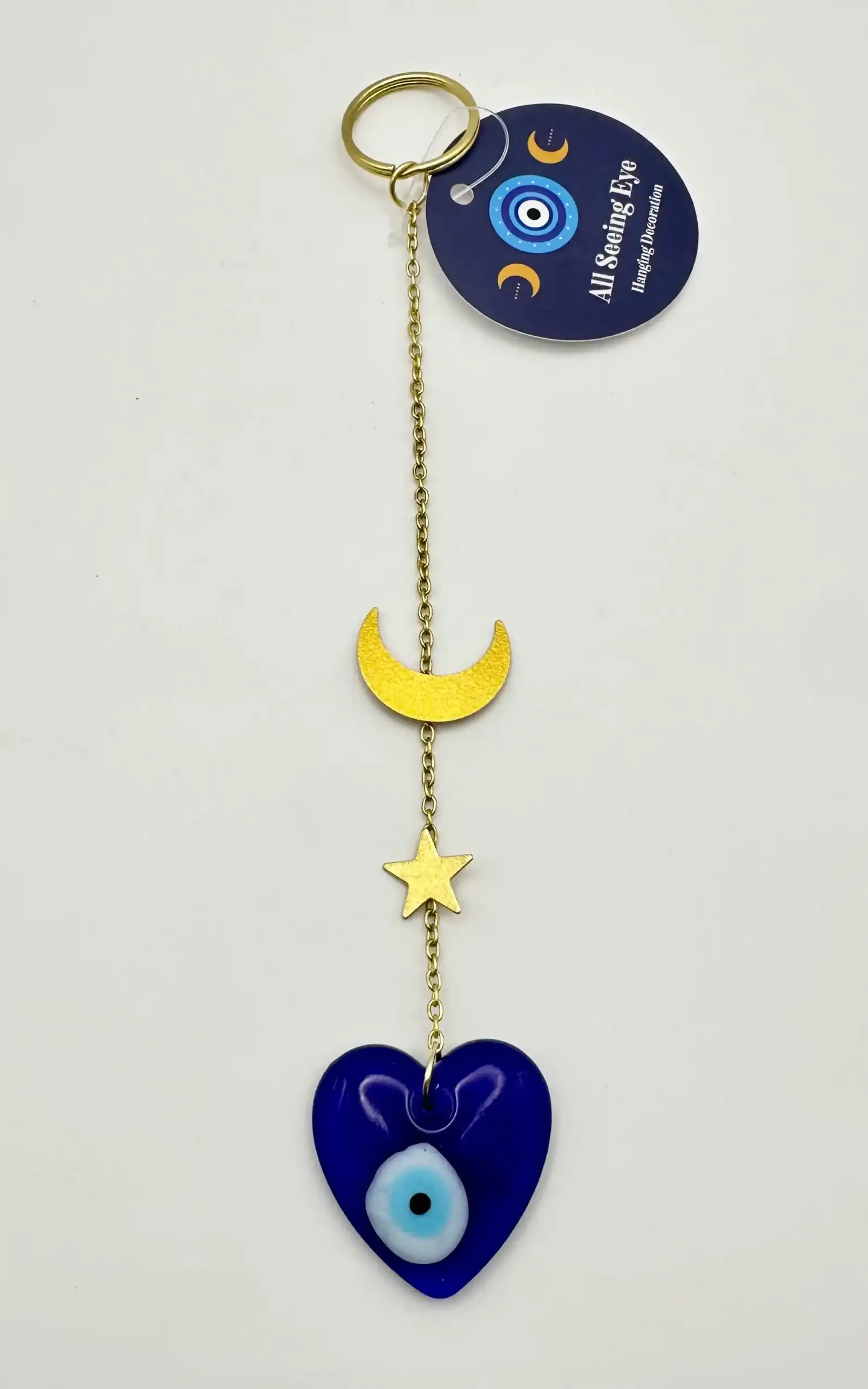 Amuleto de ojo turco con luna y estrella para colgar.