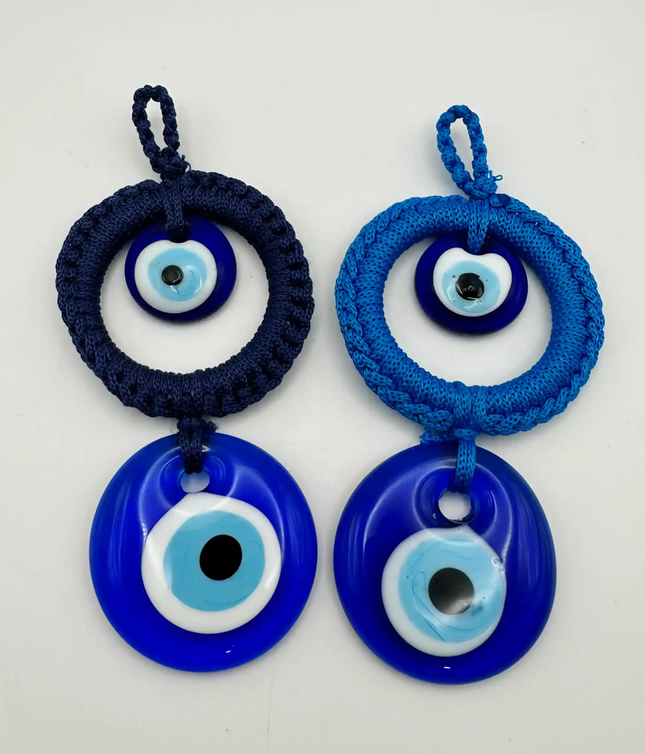Amuleto ojo turco con macramé, protege de malas energías y mal de ojo