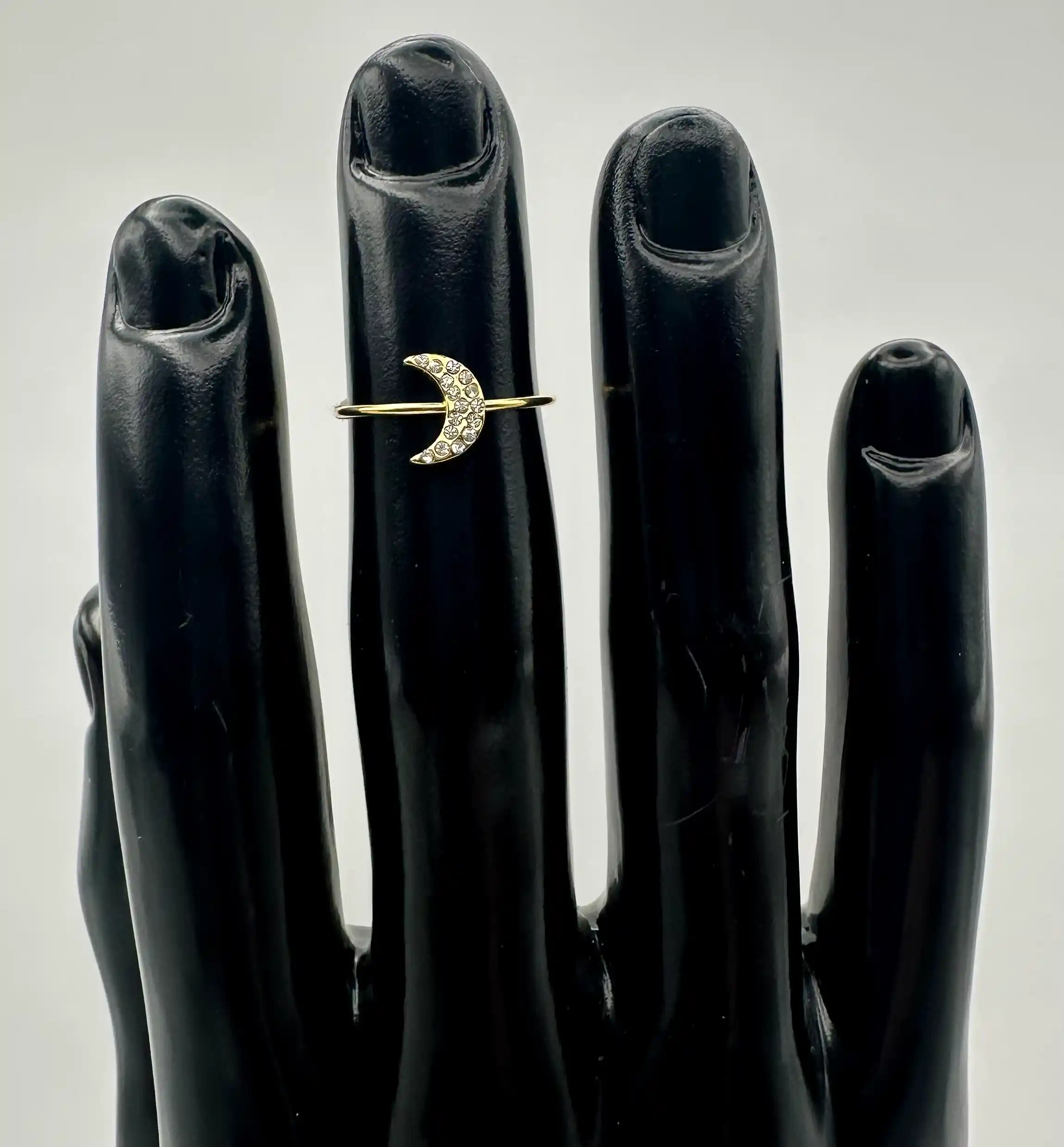 Anillo de acero regulable con luna recubierta de pedrería fina.