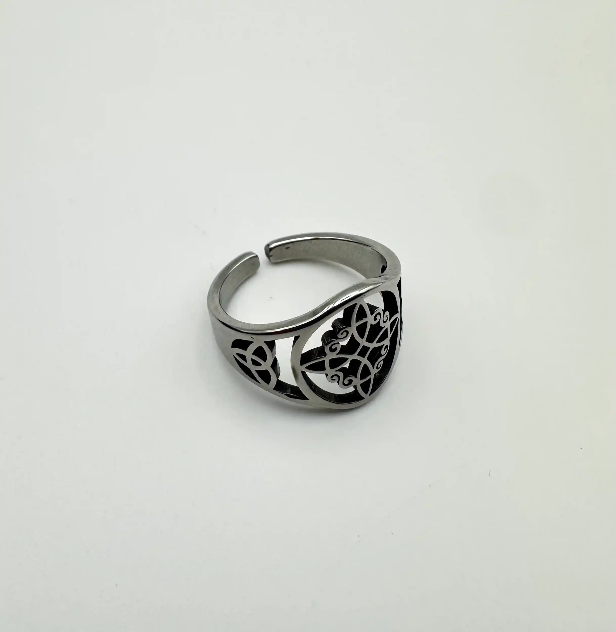 Anillo Nudo De Bruja Acero Plateado Regulable