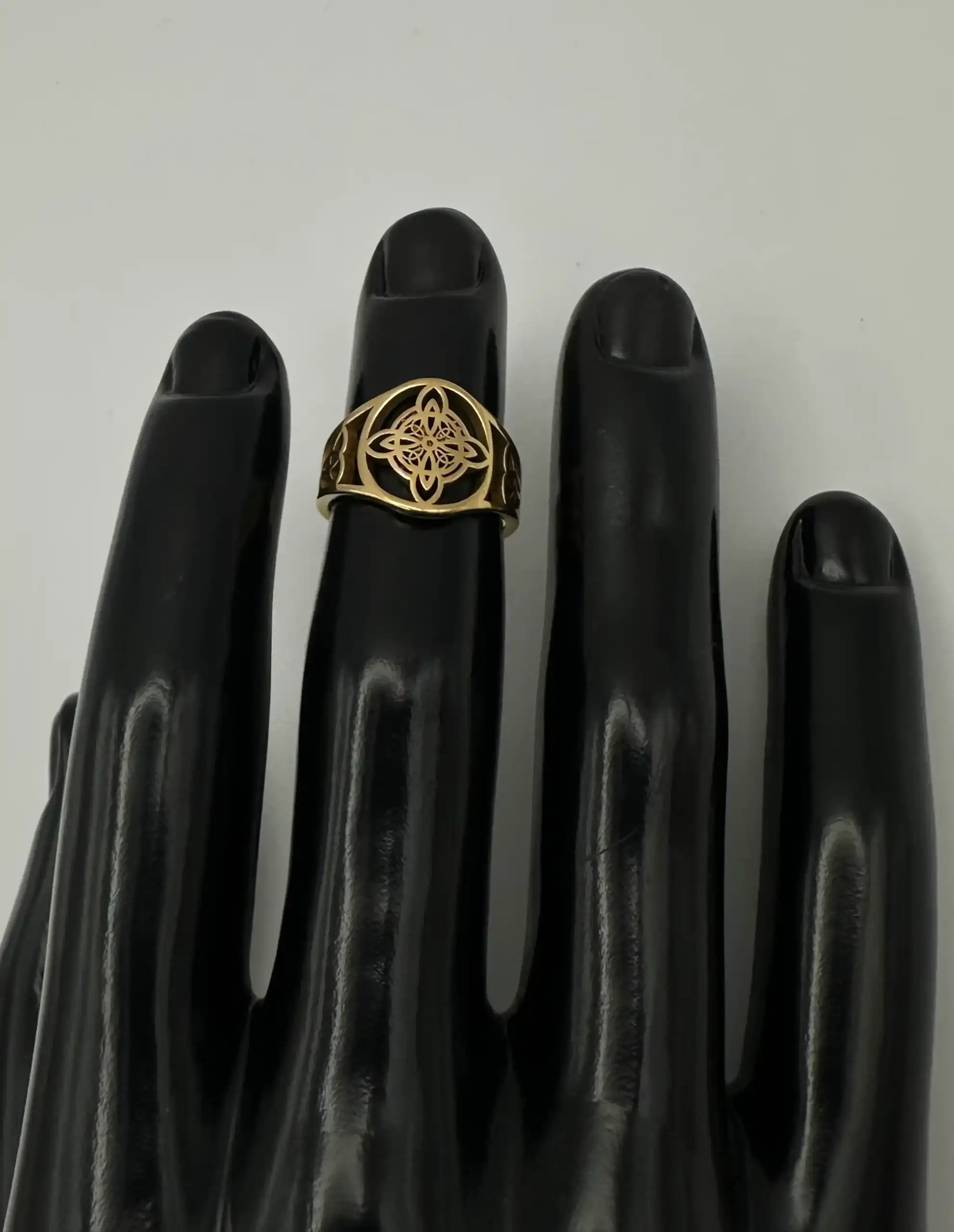 Anillo nudo de bruja en forma de sello, acero inoxidable.