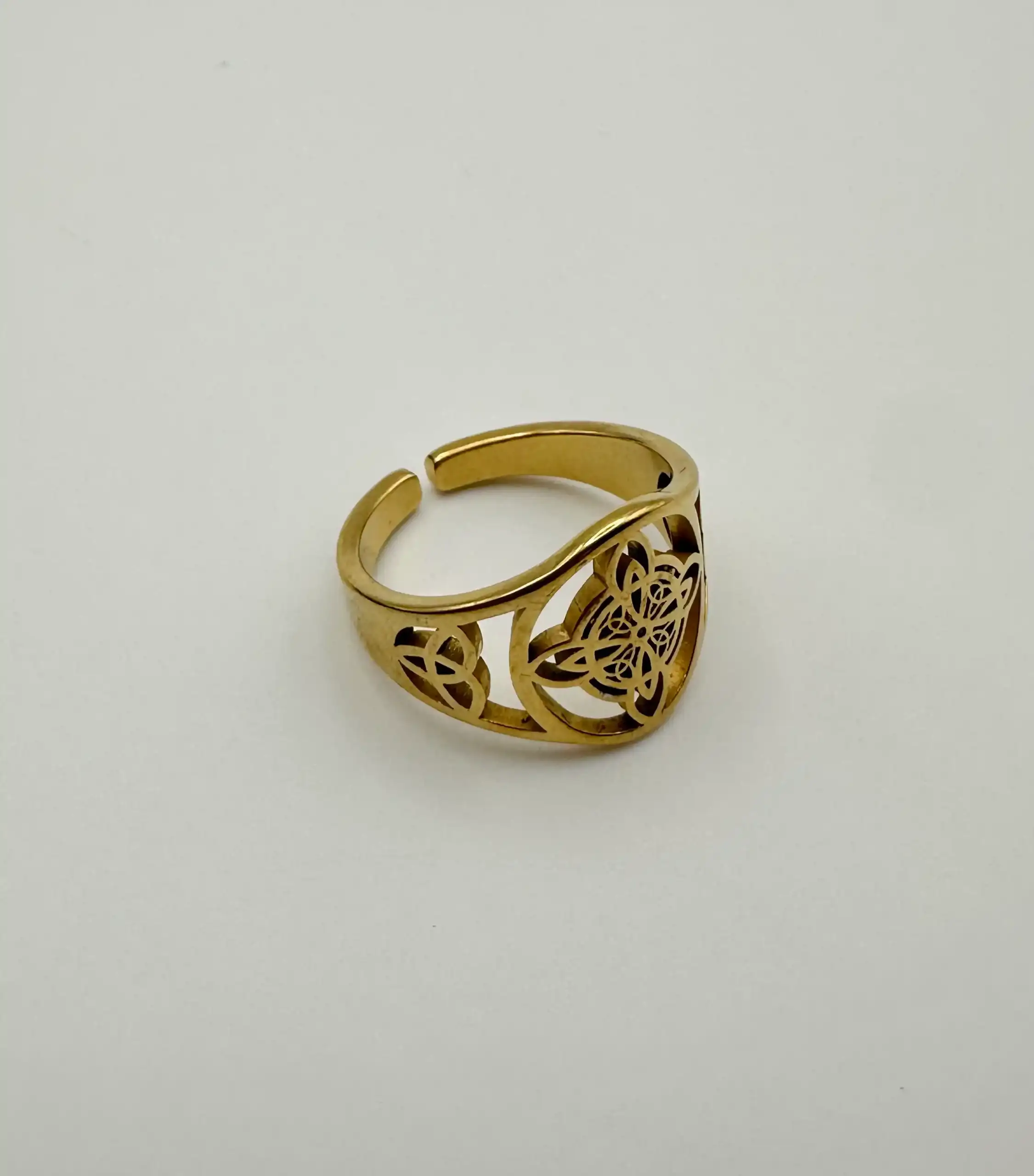 Anillo Nudo De Bruja Doble Acero Dorado Regulable
