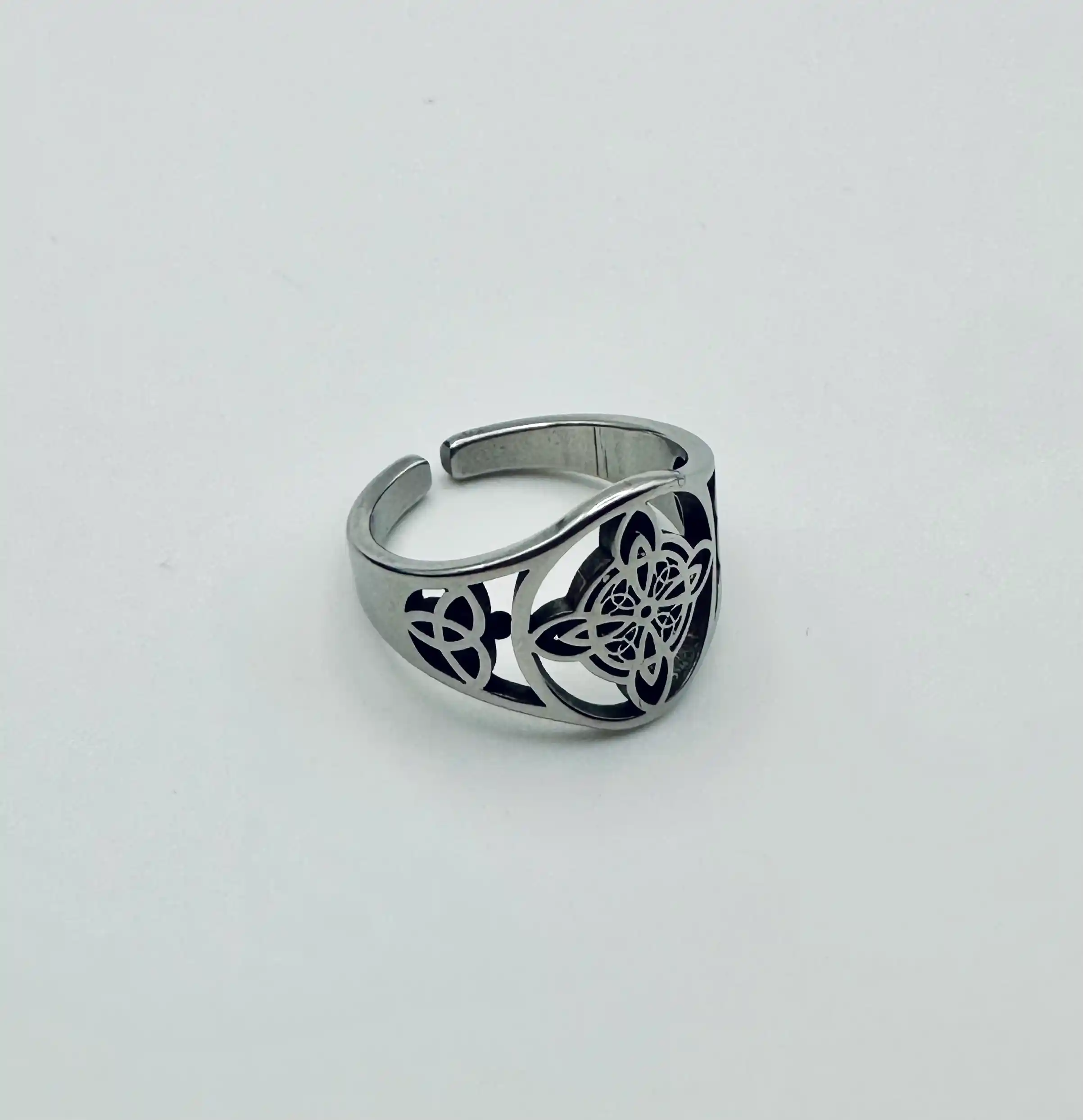 Anillo Nudo De Bruja Doble Acero Plateado Regulable