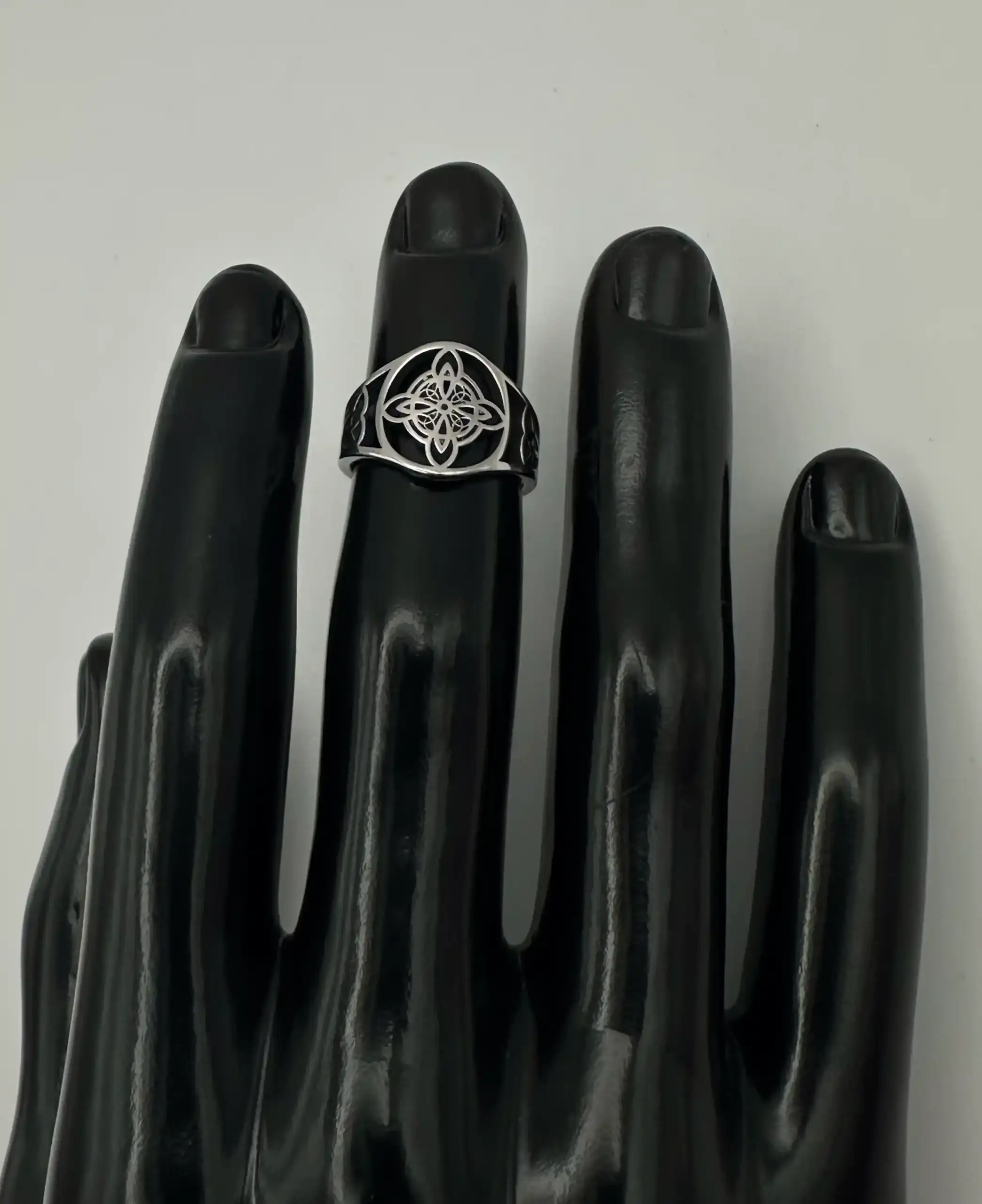 Anillo nudo de bruja en forma de sello, acero inoxidable.