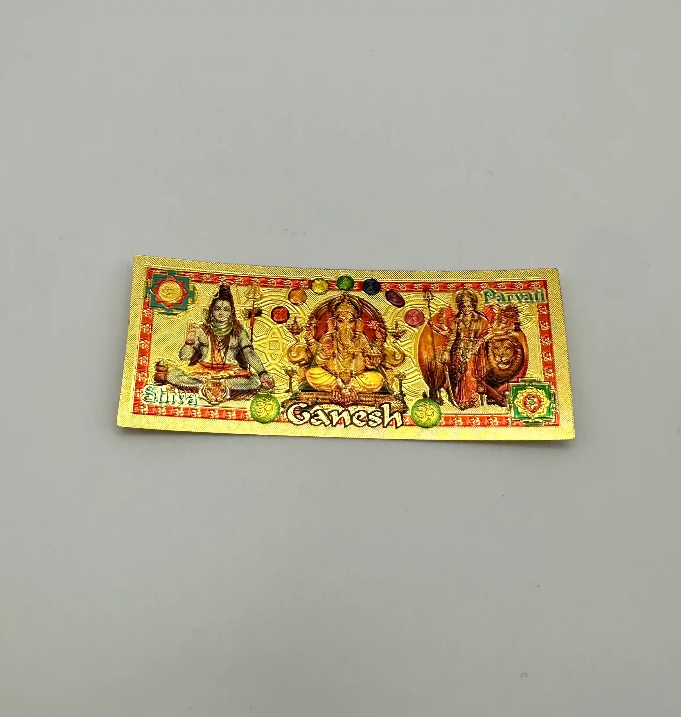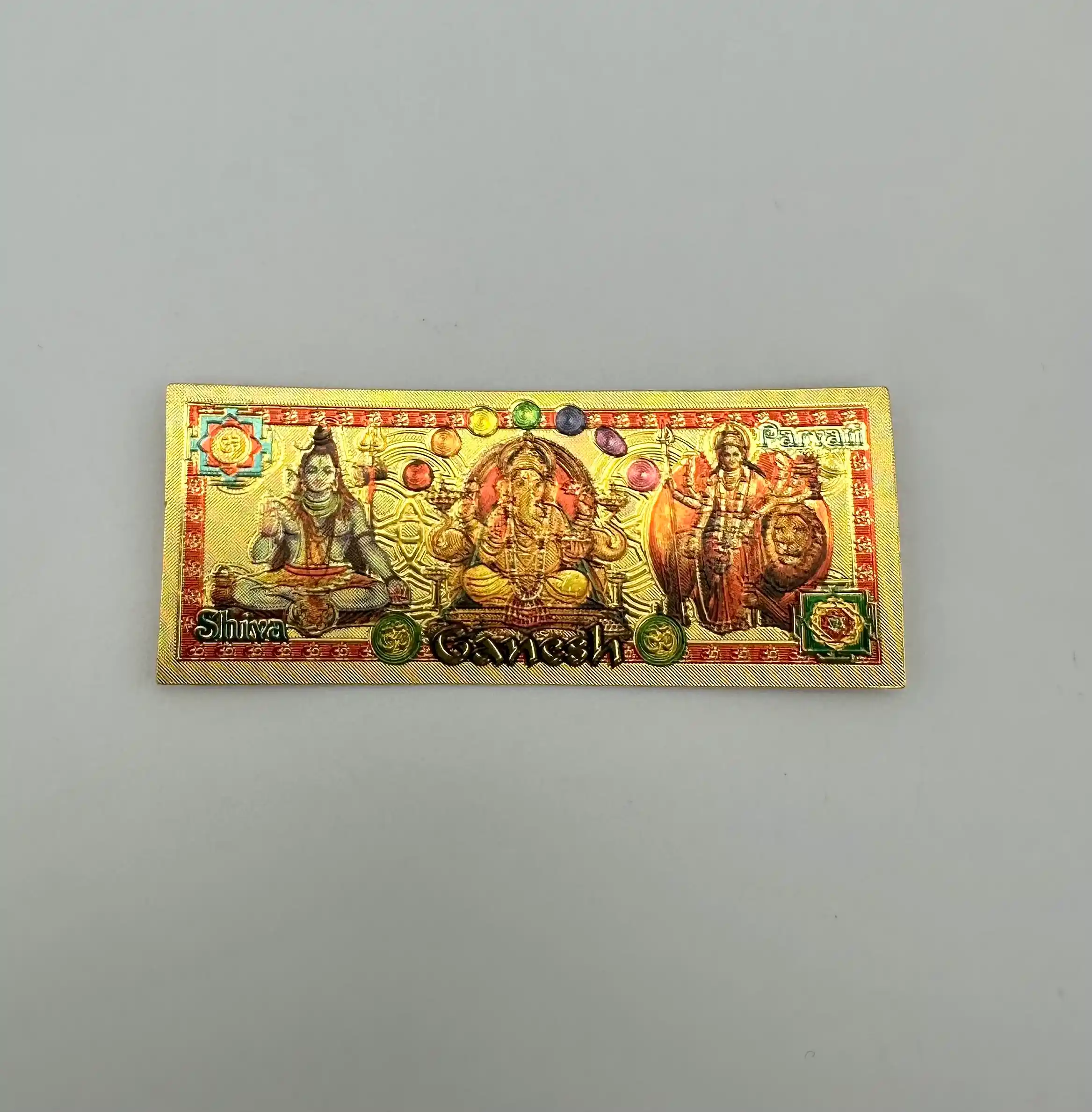 El billete dorado es un amuleto de la suerte y la prosperidad, el color dorado representa la riqueza y el éxito. Ganesha, el dios hindú, simboliza la superación de obstáculos y el patrón de la abundancia y la sabiduría.