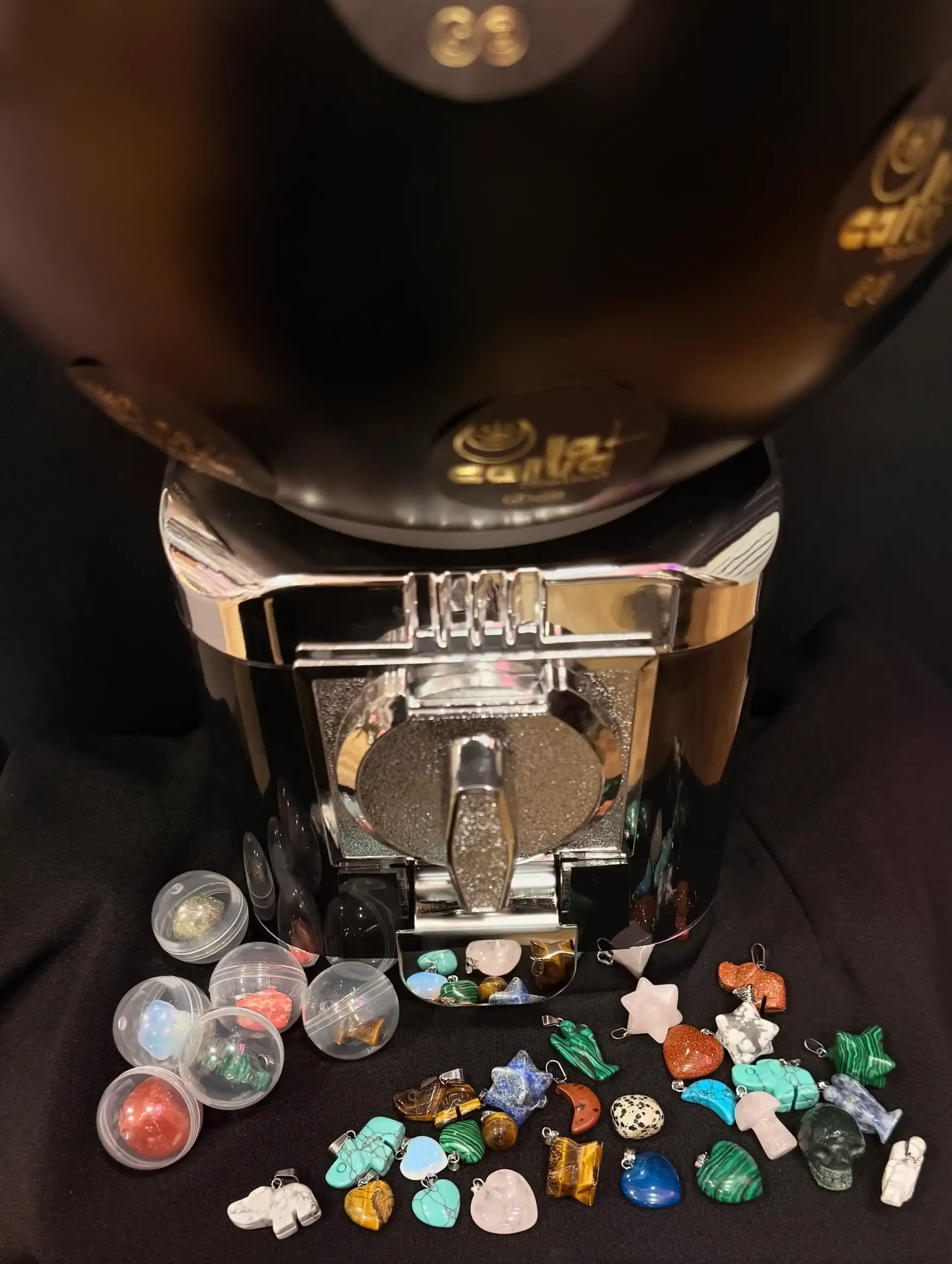 El 11/11/2025 hacemos nuestro primer año con la tienda física y no se nos ha ocurrido otra cosa que poner una máquina de bolas con minerales variados, pero no se pueden elegir, el destino es el que hará que te toque la que realmente necesitas. ¡Hay una gran variedad de minerales y formas, en rodados o para colgar! ¿Cuál será el tuyo?