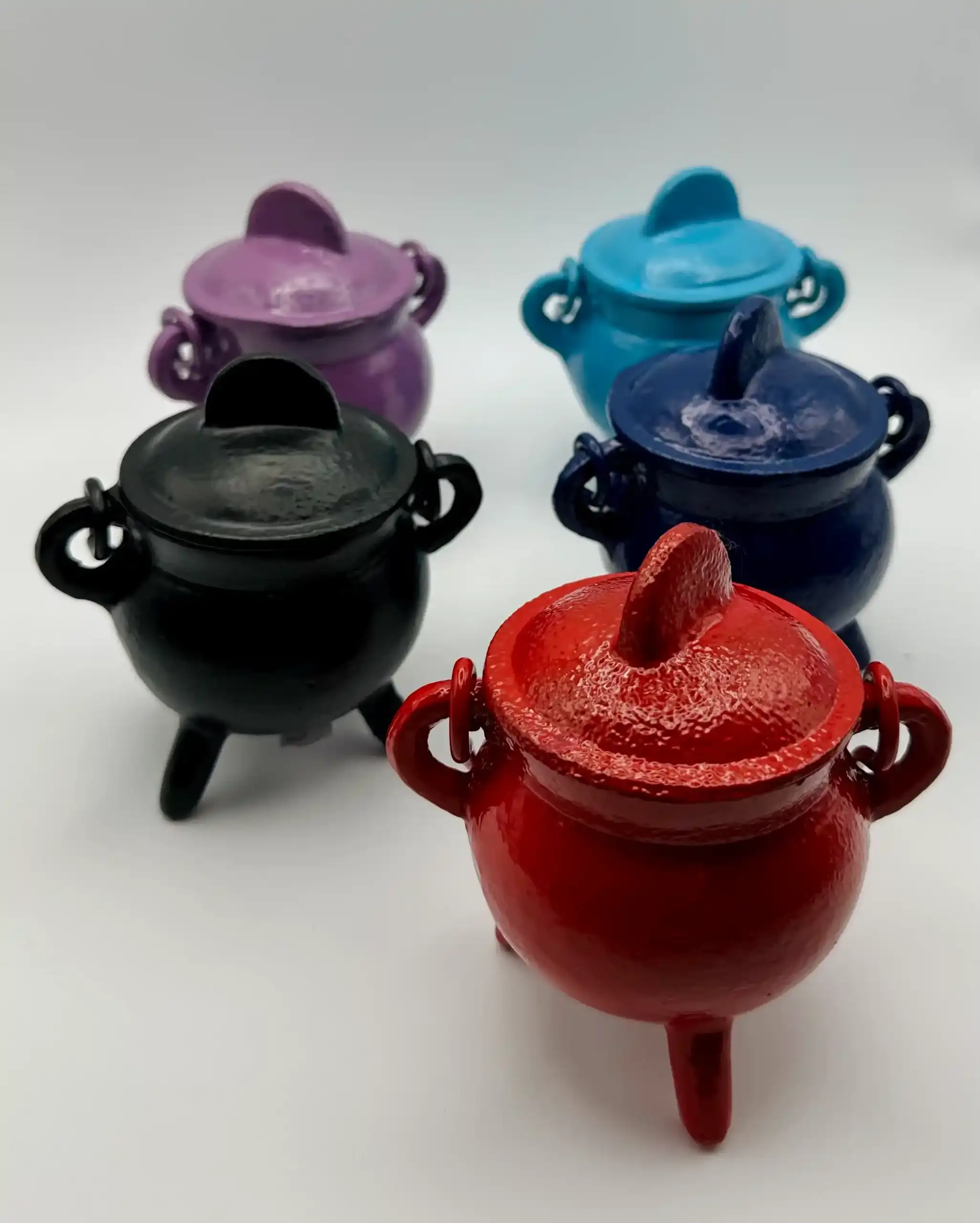 El caldero de hierro se utiliza para realizar rituales, quemar hierbas e inciensos, y como recipiente para mezclar ingredientes mágicos. Simbólicamente, representa el vientre de la Diosa en la tradición wiccana, simbolizando la creación, la fertilidad y la transformación. Sus usos más comunes son quemar «peticiones» escritas en papel, mezclar elementos para pociones y actuar como incensario.