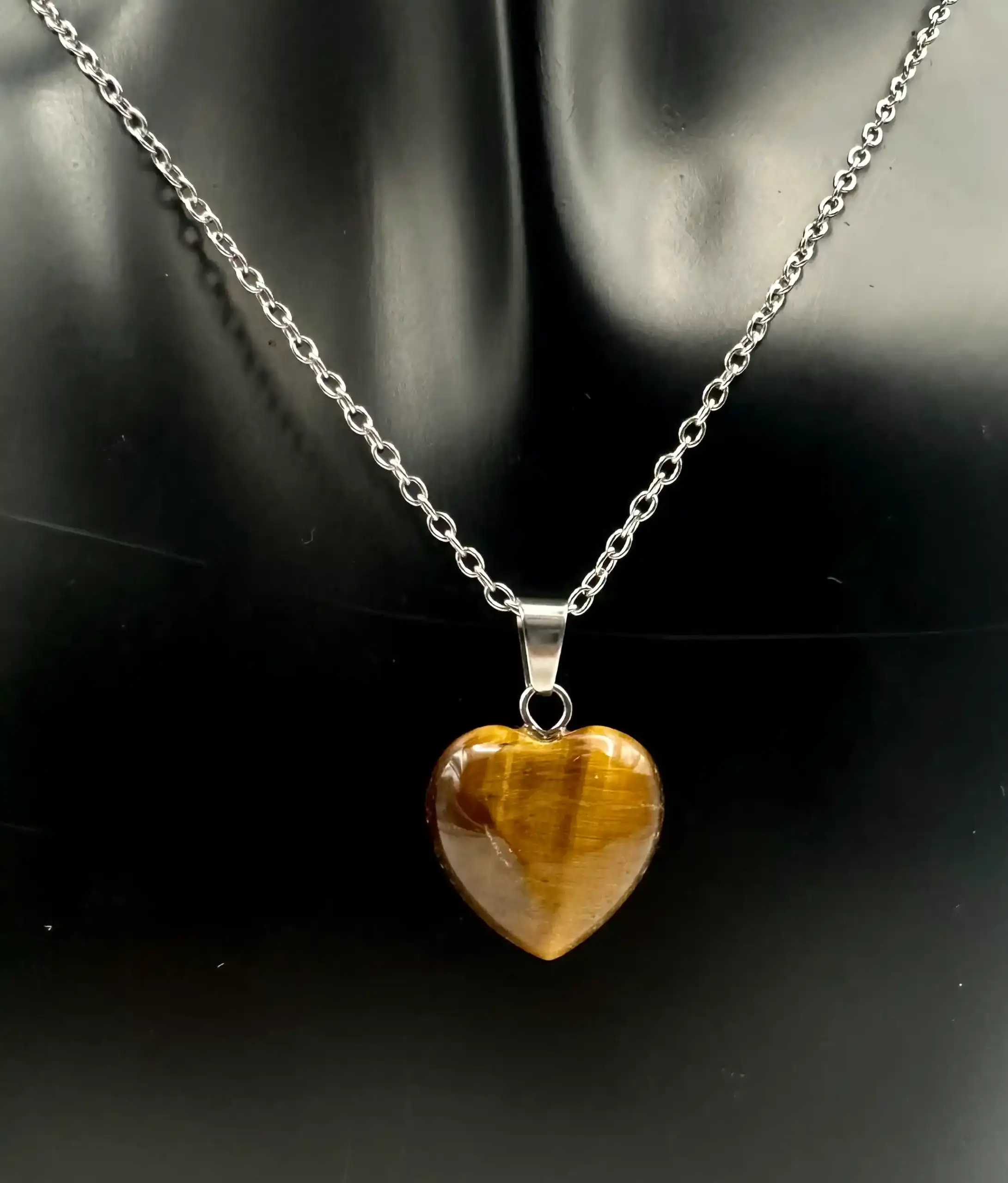 El corazón de Ojo de Tigre combina la protección del cristal con el símbolo del amor y la conexión, atrayendo fortaleza interior, confianza, valentía y claridad mental, mientras actúa como un escudo contra la envidia, el mal de ojo y la negatividad, ayudando a equilibrar energías, fomentar la perseverancia y lograr metas personales y profesionales, siendo ideal para la toma de decisiones y el crecimiento espiritual.