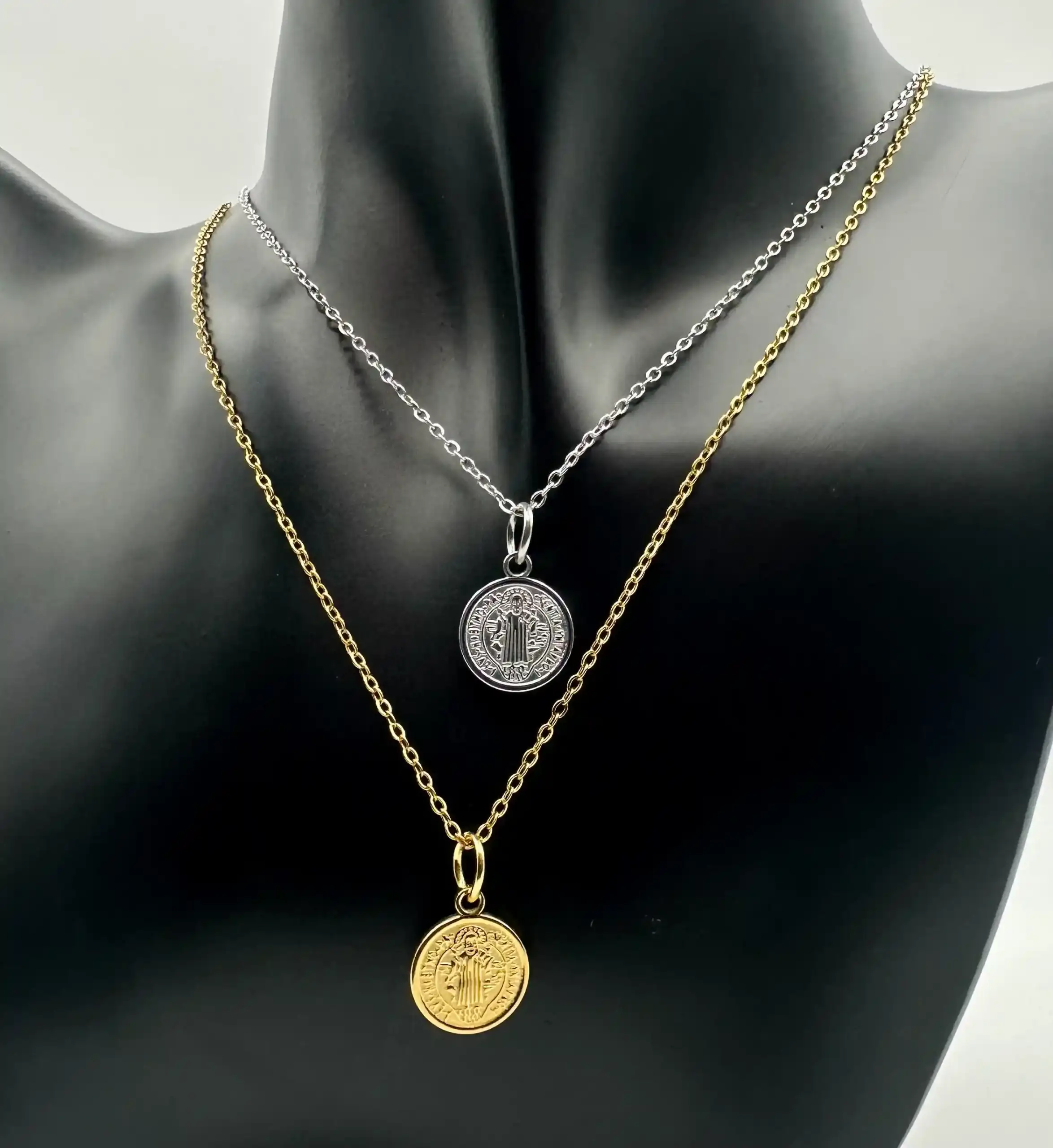 Este delicado colgante de San Benito en versión pequeña es un símbolo de fe, protección y fortaleza espiritual. La medalla de San Benito es conocida por su poder para alejar las malas energías, brindar consuelo y actuar como escudo frente a las adversidades.