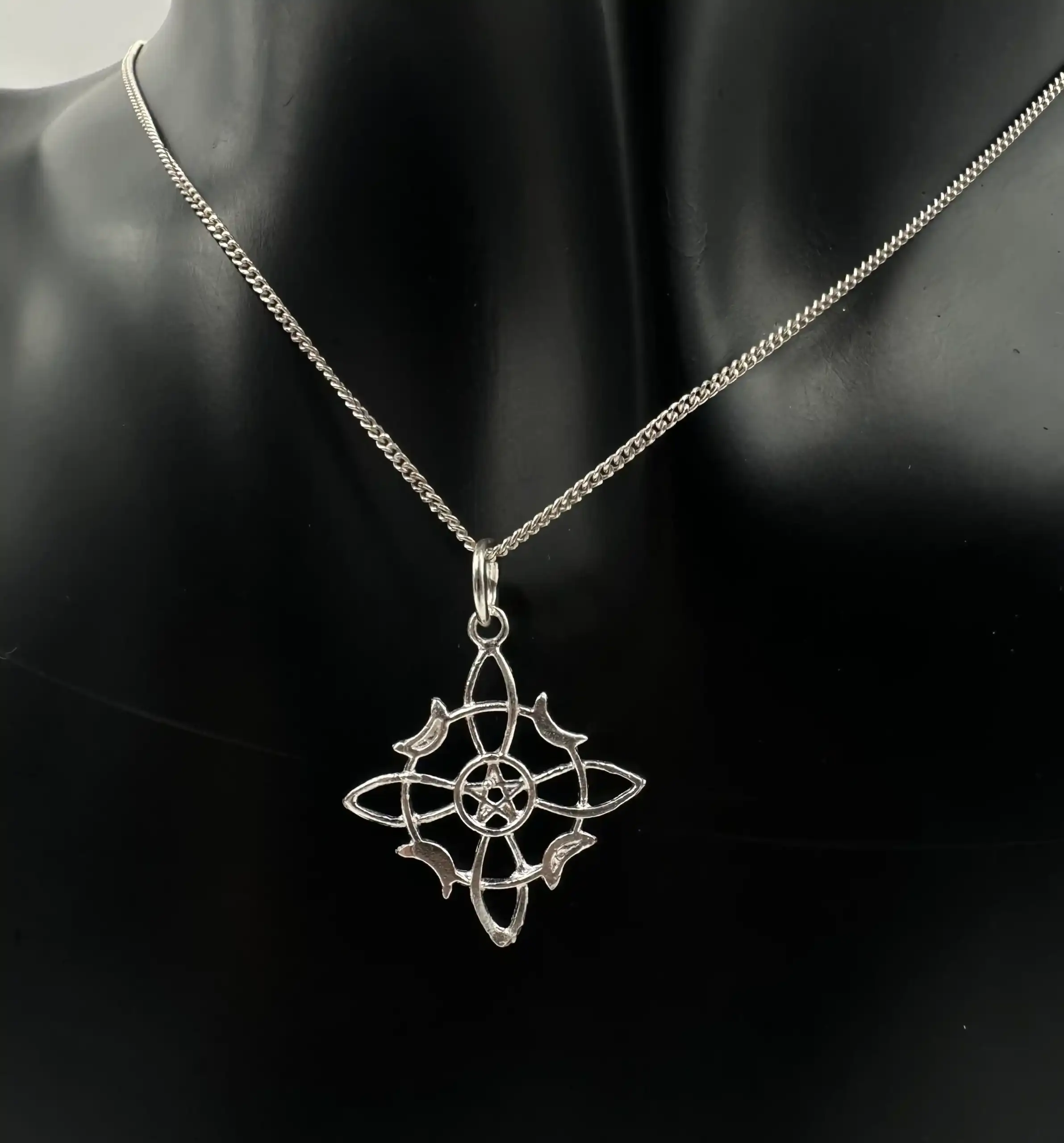 Colgante Nudo De Bruja Pentagrama Y Lunas Plata De Ley