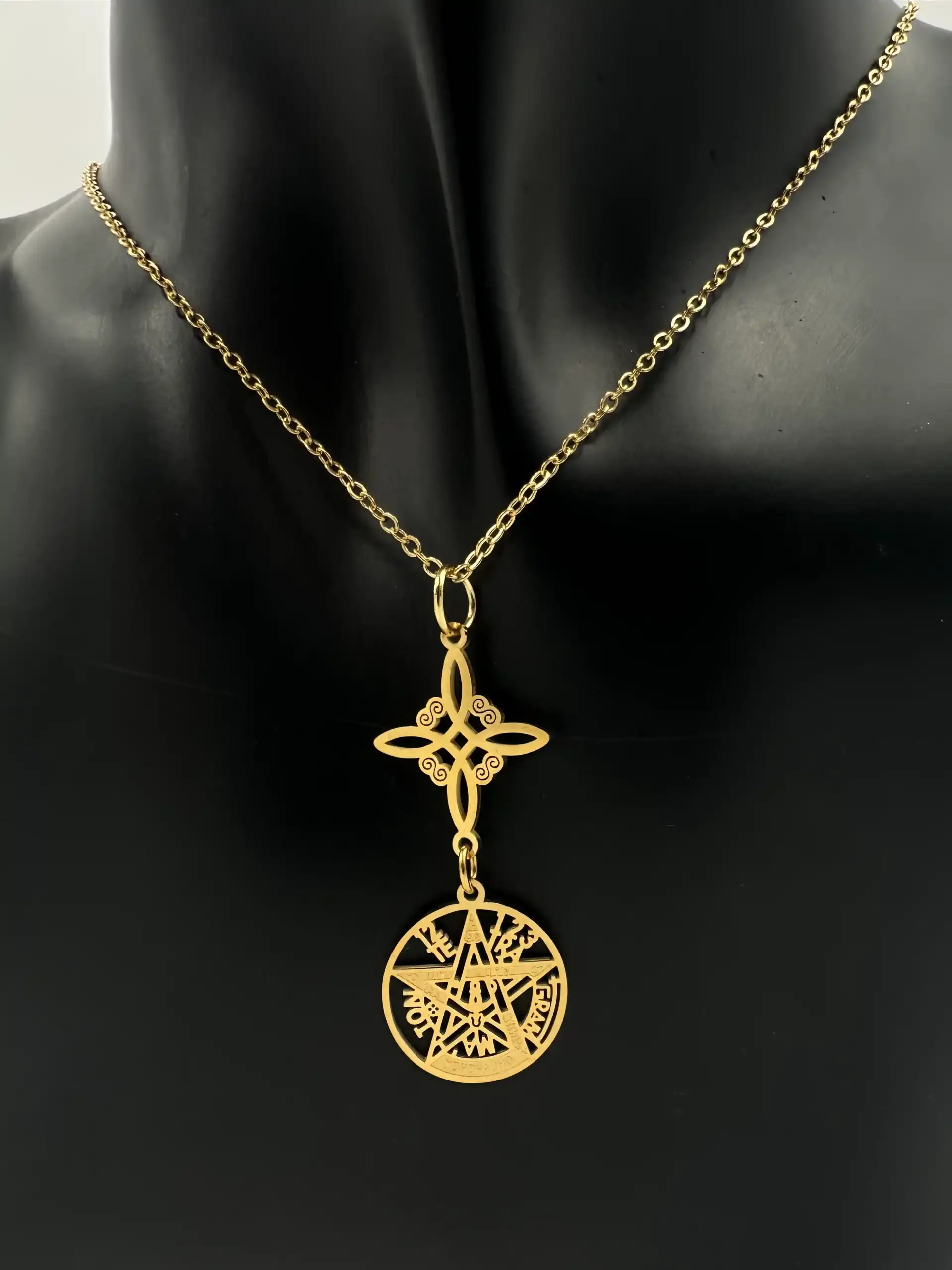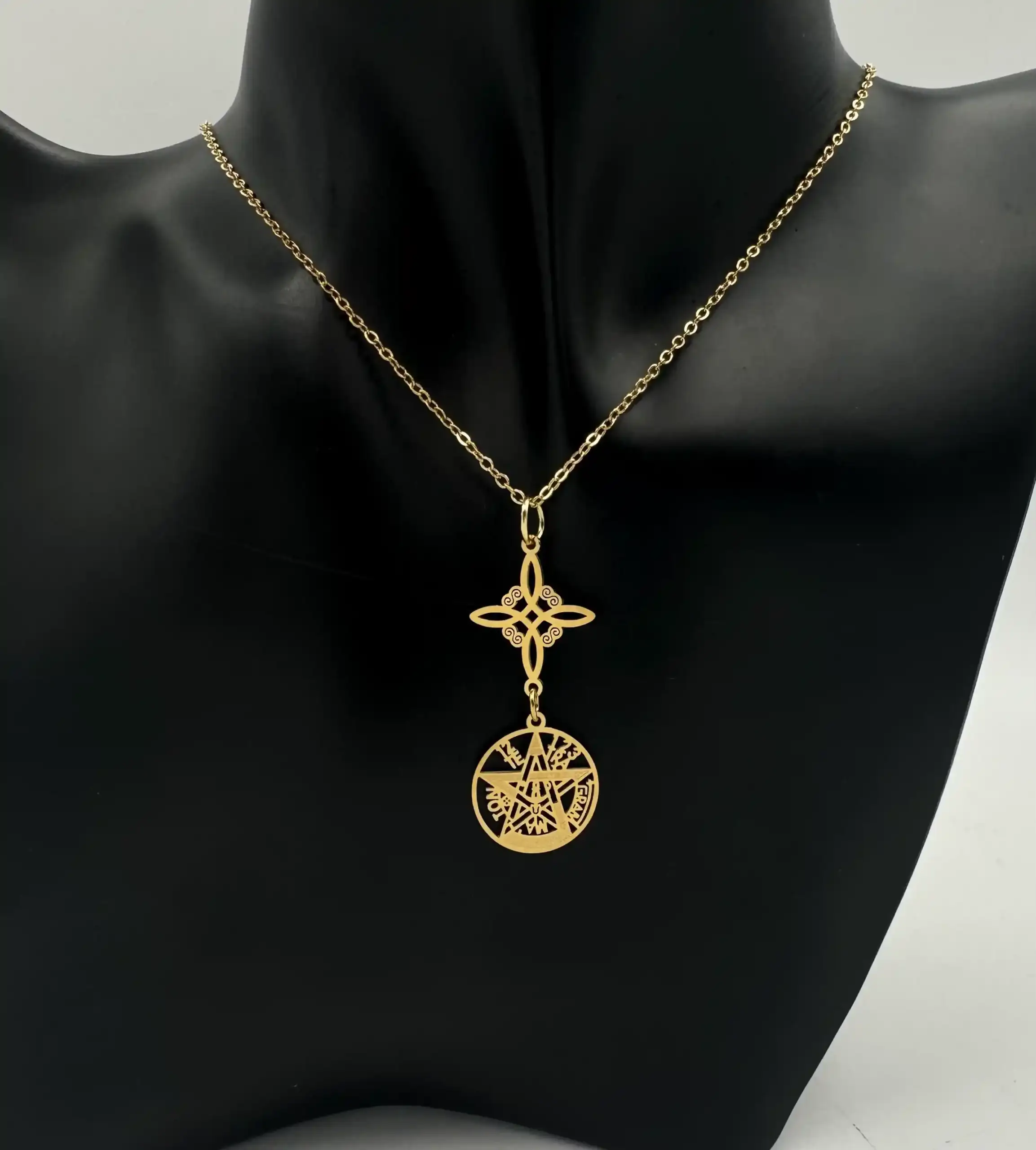 El Nudo de Bruja de origen Celta, entrelaza elementos para protección personal y del hogar, cortando malas energías y atrayendo armonía. El Tetragramatón de origen hebreo, se utiliza para el equilibrio, poder divino y protección total contra lo oscuro, conectando con lo sagrado. Juntos, ofrecen una defensa integral, fusionando lo místico-ancestral con lo divino-espiritual.