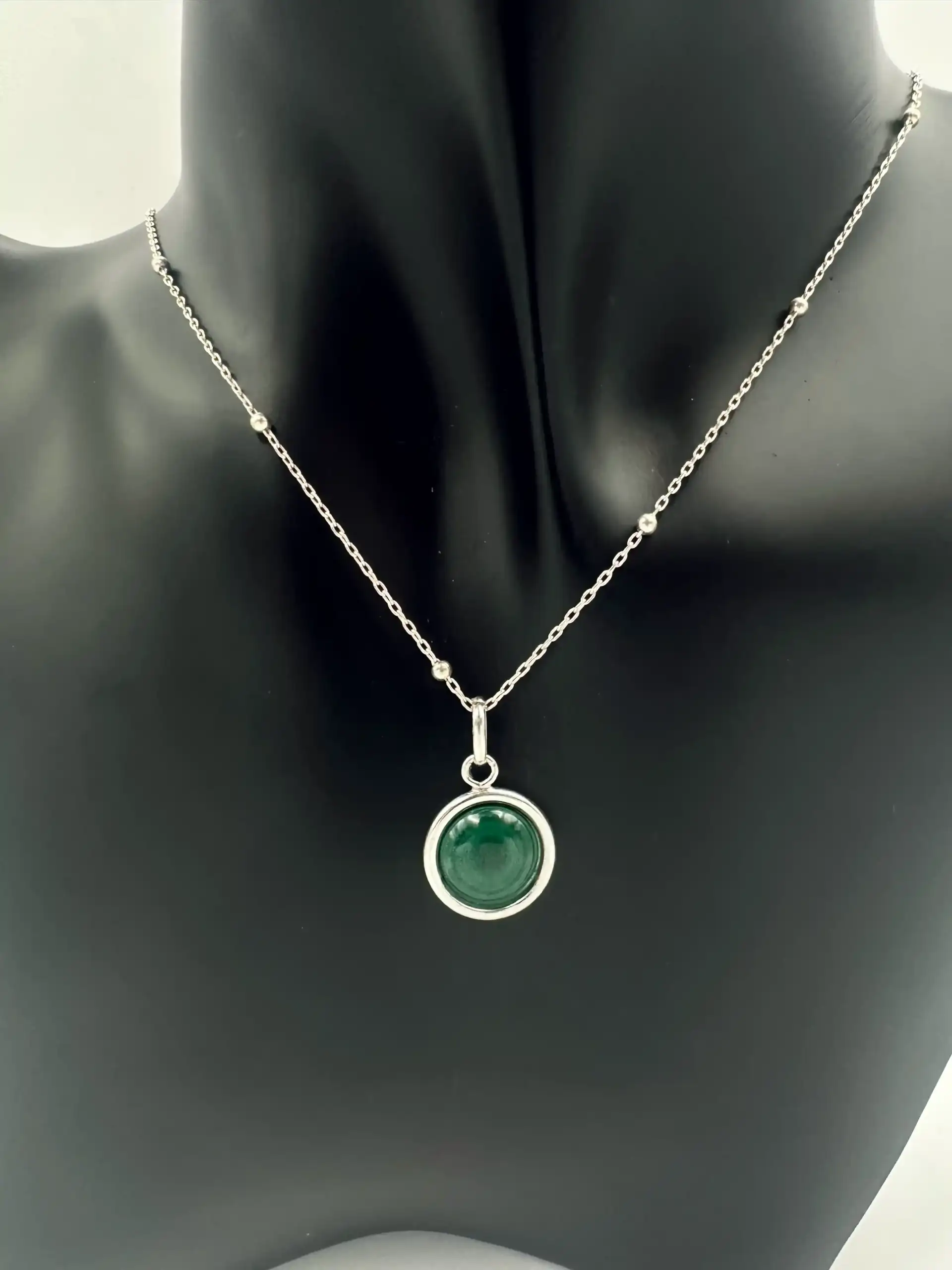 Colgante en plata de ley de Malaquita se asocia con la protección, la transformación personal, el equilibrio emocional y la conexión con la intuición. Se considera una piedra que absorbe las energías negativas, facilita la superación de miedos, promueve la sanación de heridas emocionales y equilibra el chakra del corazón y el tercer ojo.