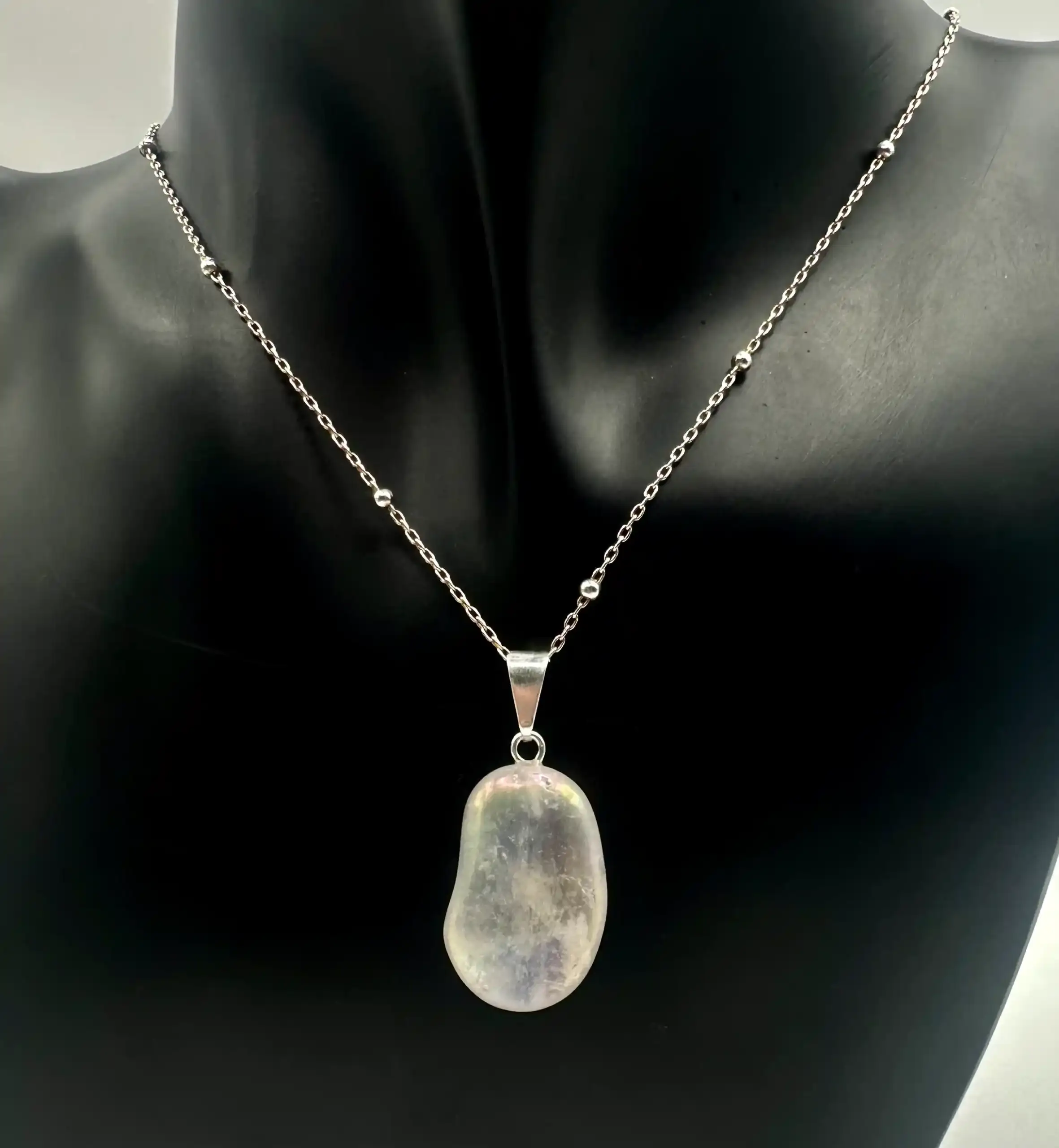 El cuarzo Aqua Aura se considera una piedra de vibración extremadamente alta, barre las energías negativas y las impurezas acumuladas en el aura. Es capaz de reparar agujeros o grietas en el campo energético causados por el estrés, el trauma o ataques psíquicos. Crea una barrera que protege contra las personas que nos roban energía y las influencias externas pesadas. También nos ayuda con la conexión espiritual, meditación y alivia el estrés.