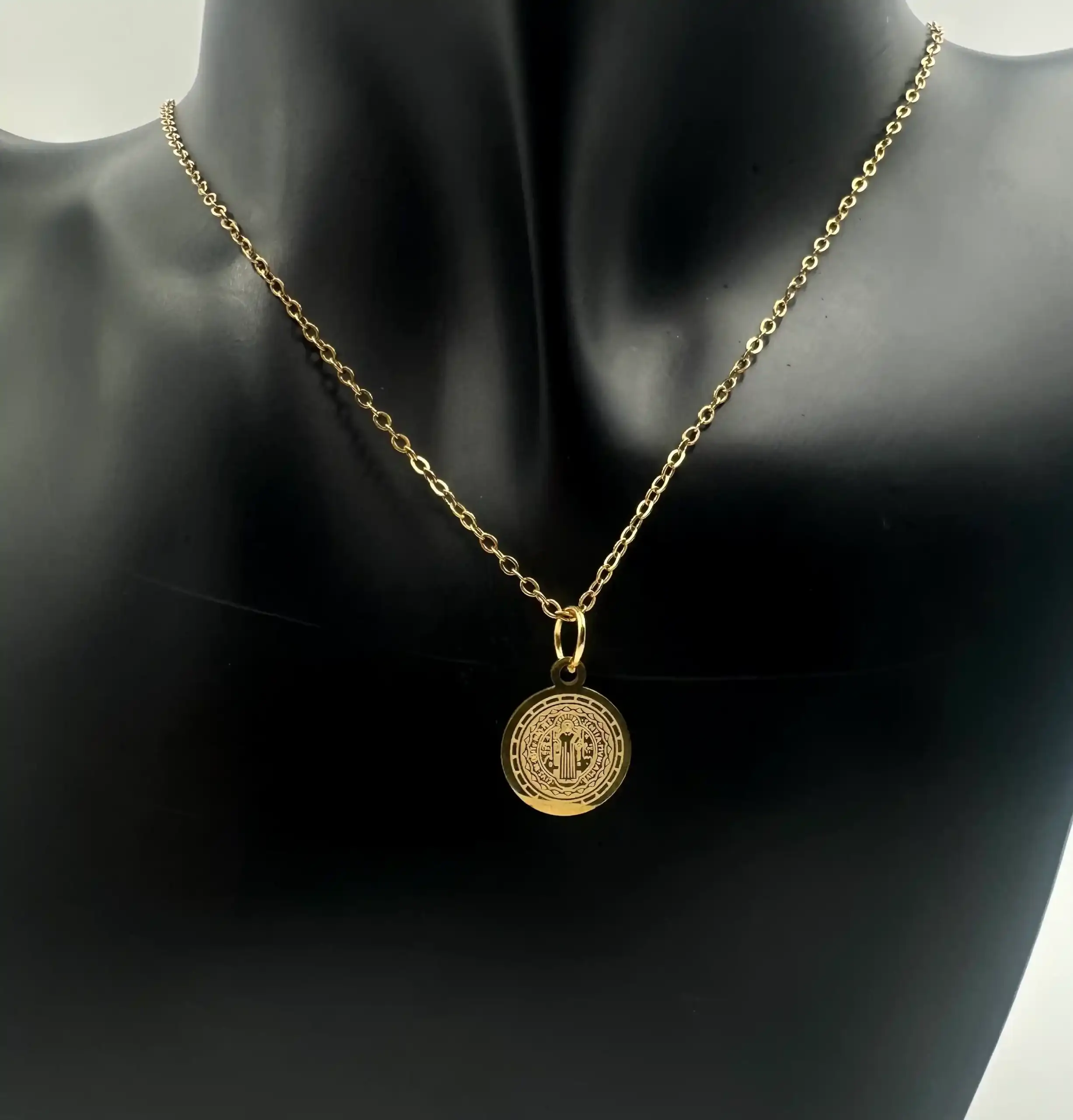 Este delicado colgante de San Benito en versión pequeña es un símbolo de fe, protección y fortaleza espiritual. La medalla de San Benito es conocida por su poder para alejar las malas energías, brindar consuelo y actuar como escudo frente a las adversidades.