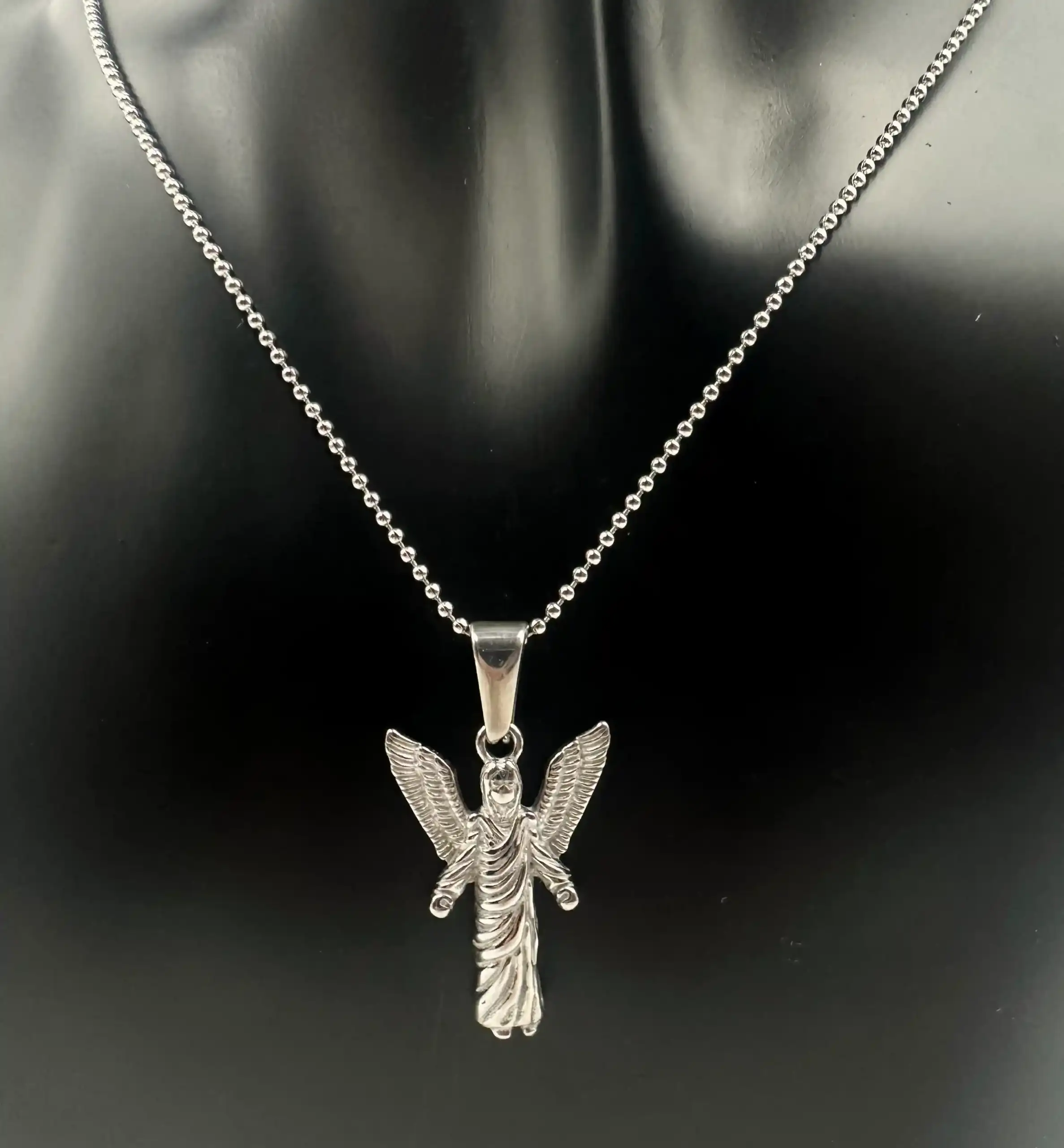 Colgante San Gabriel de 2 cm aproximadamente en acero plateado