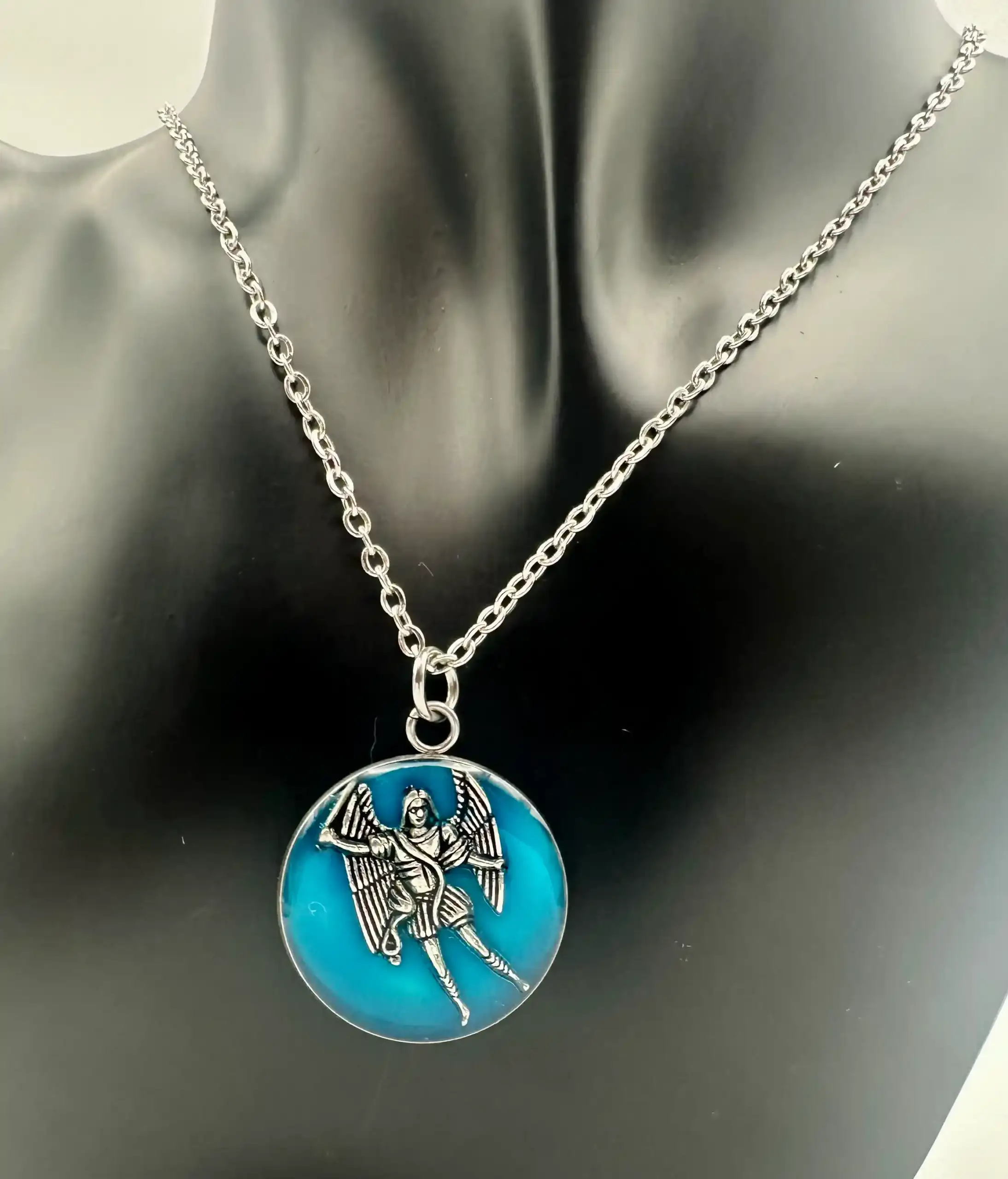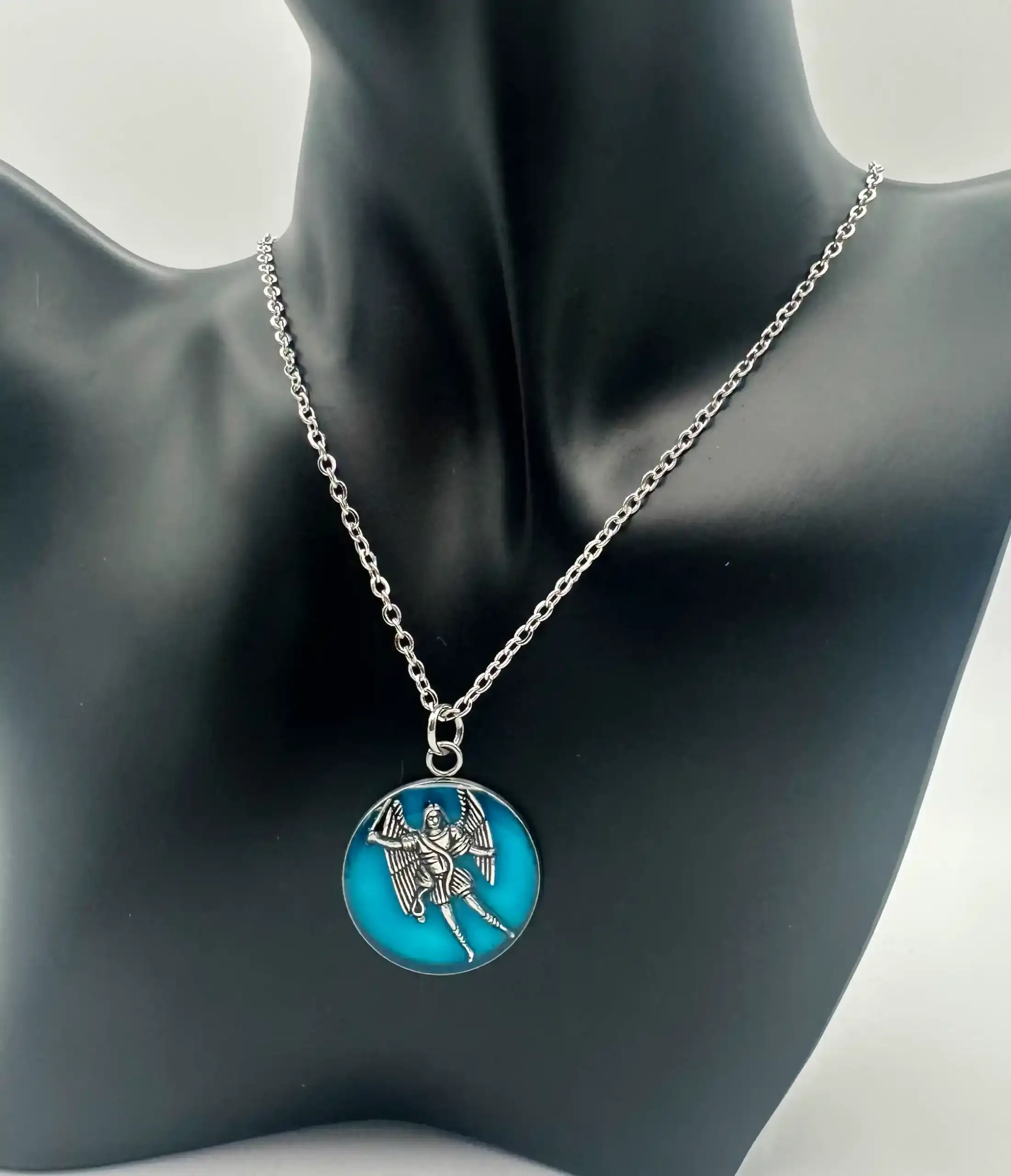 Colgante San Miguel Arcangel Acero Y Azul