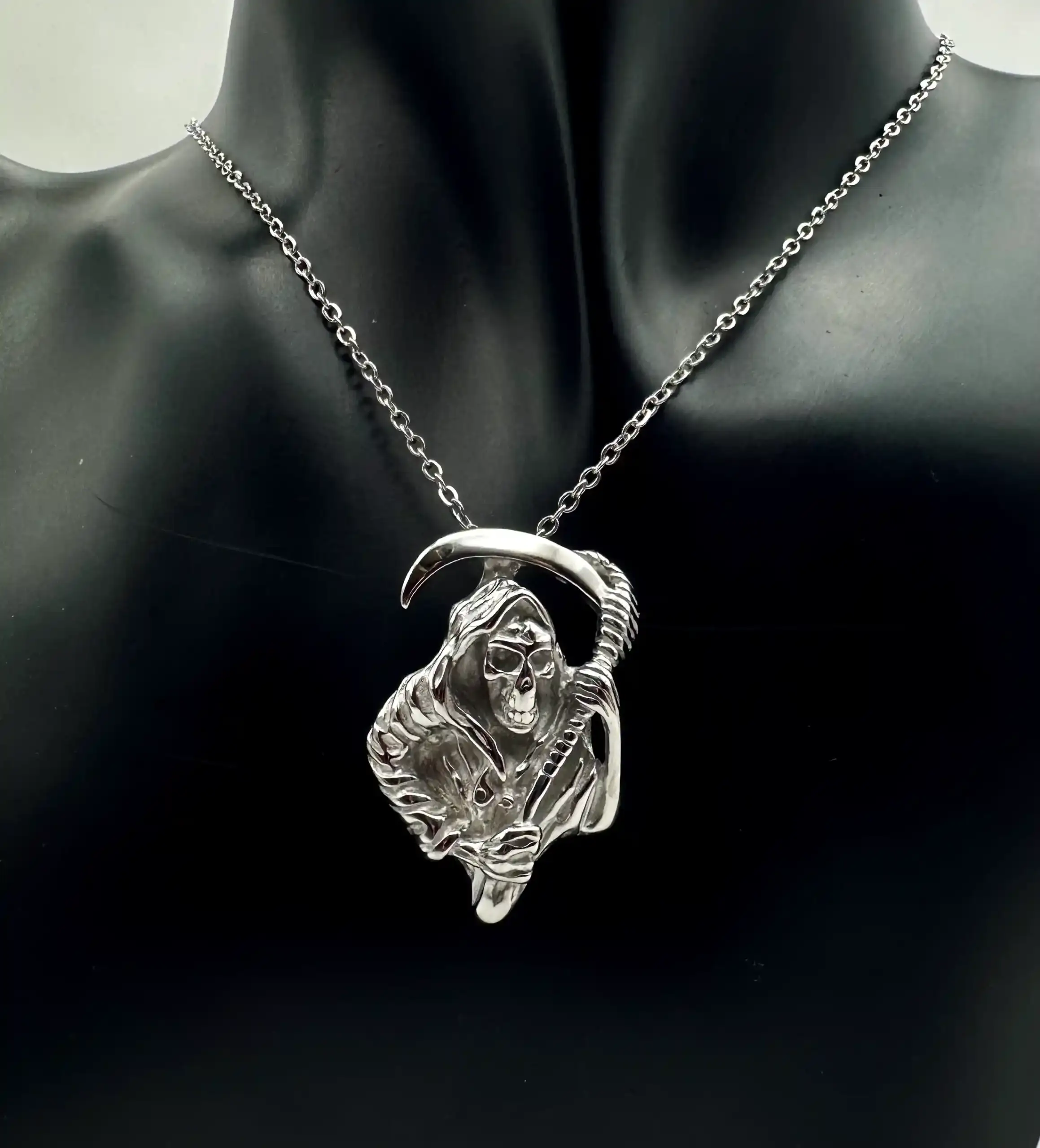Colgante Santa Muerte Grande Acero Plateado