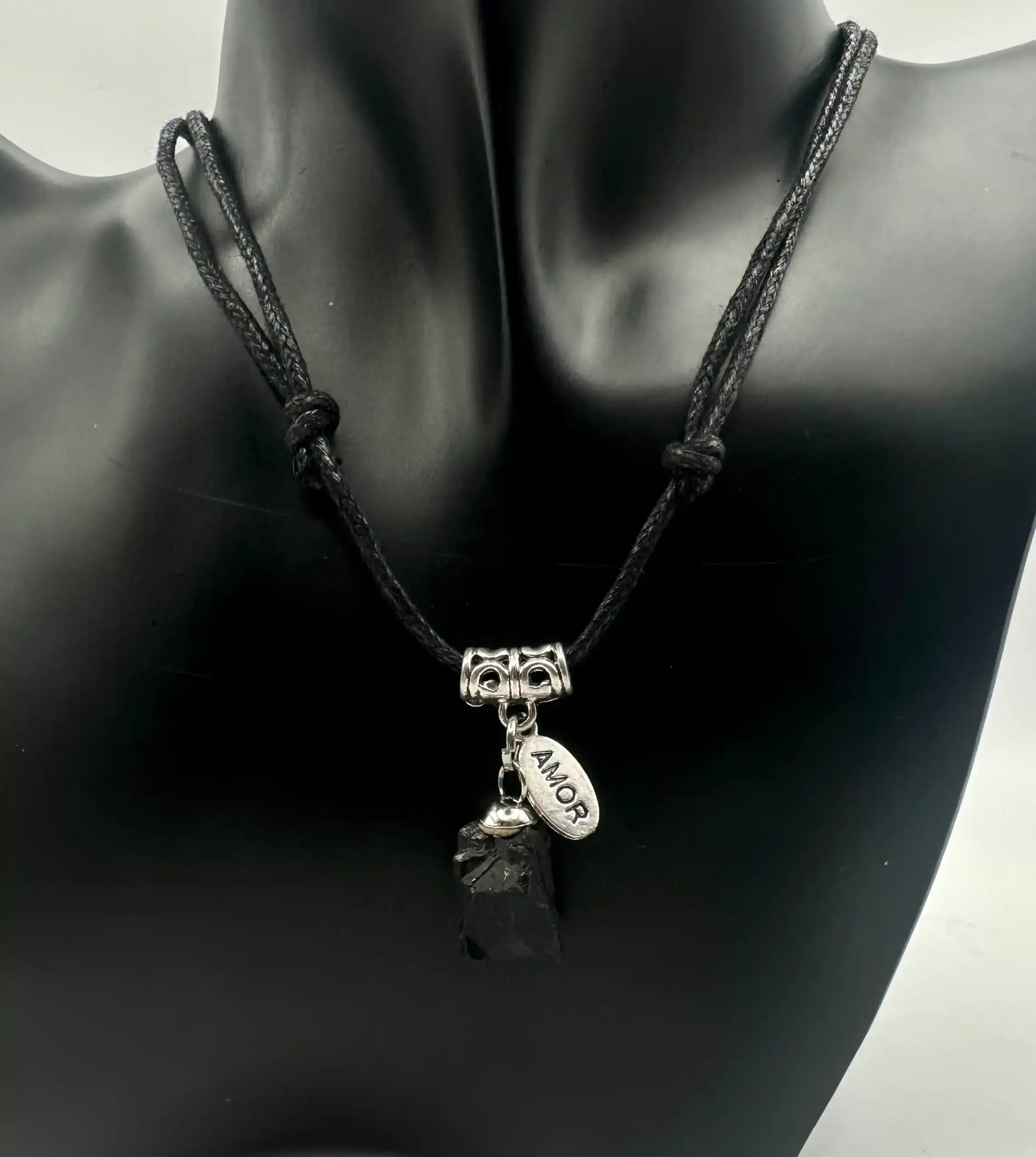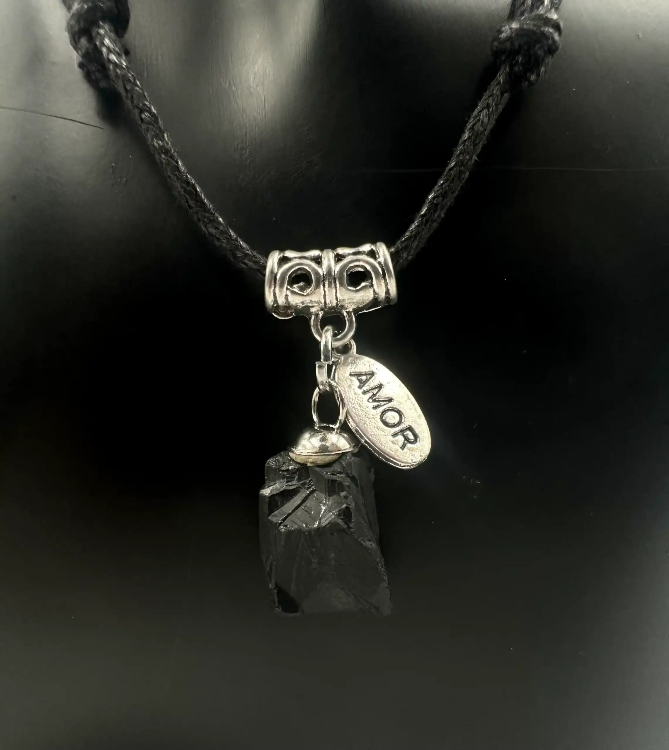 Colgante de cordón negro regulable.