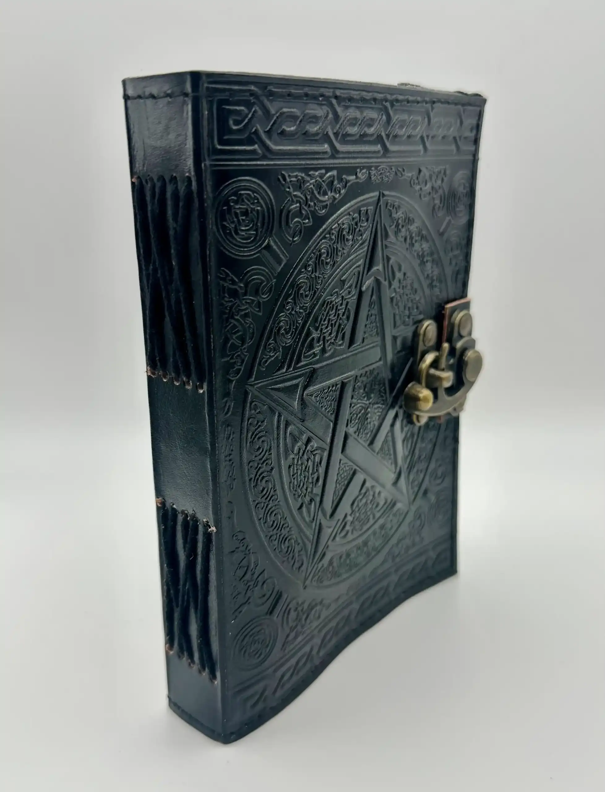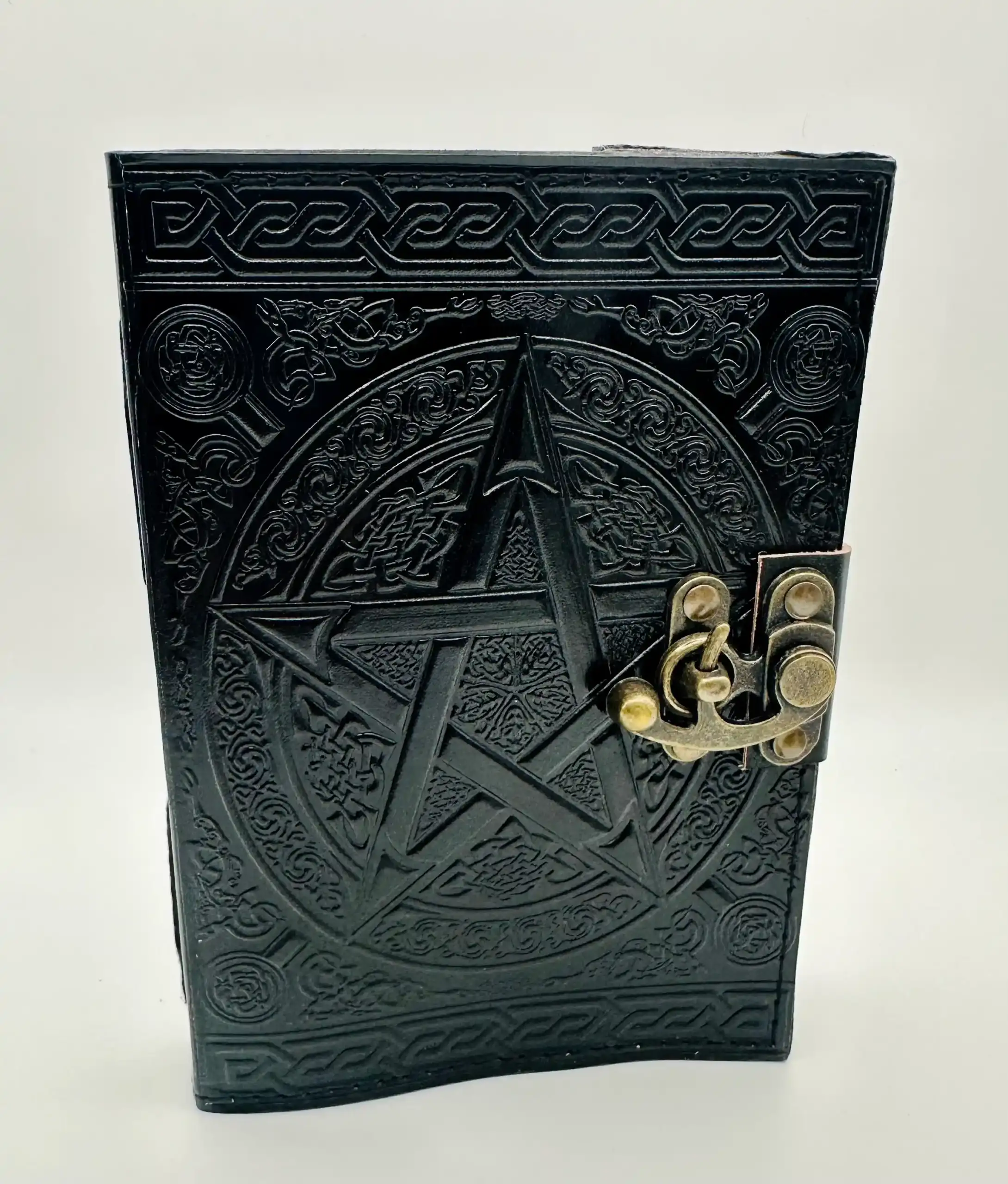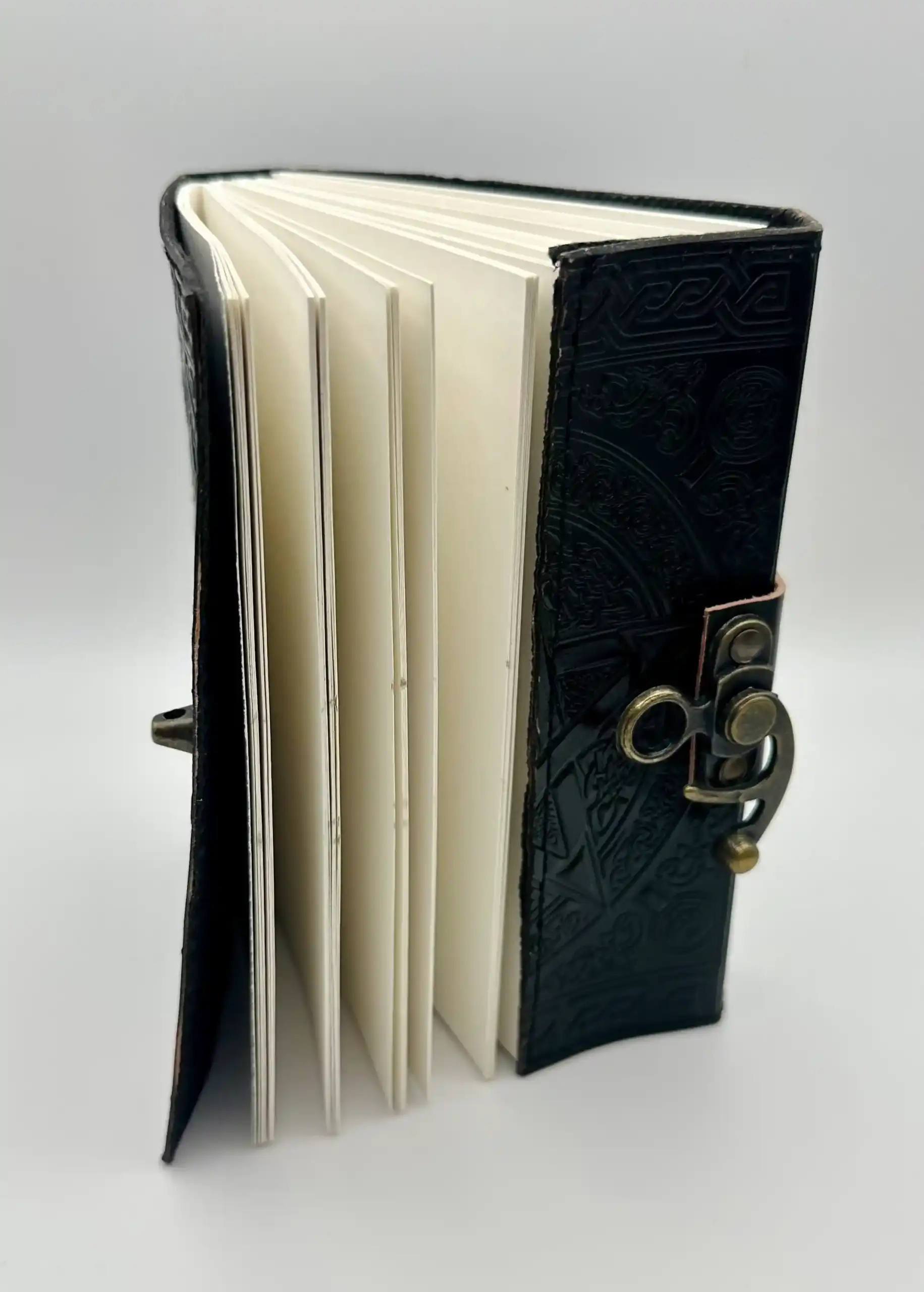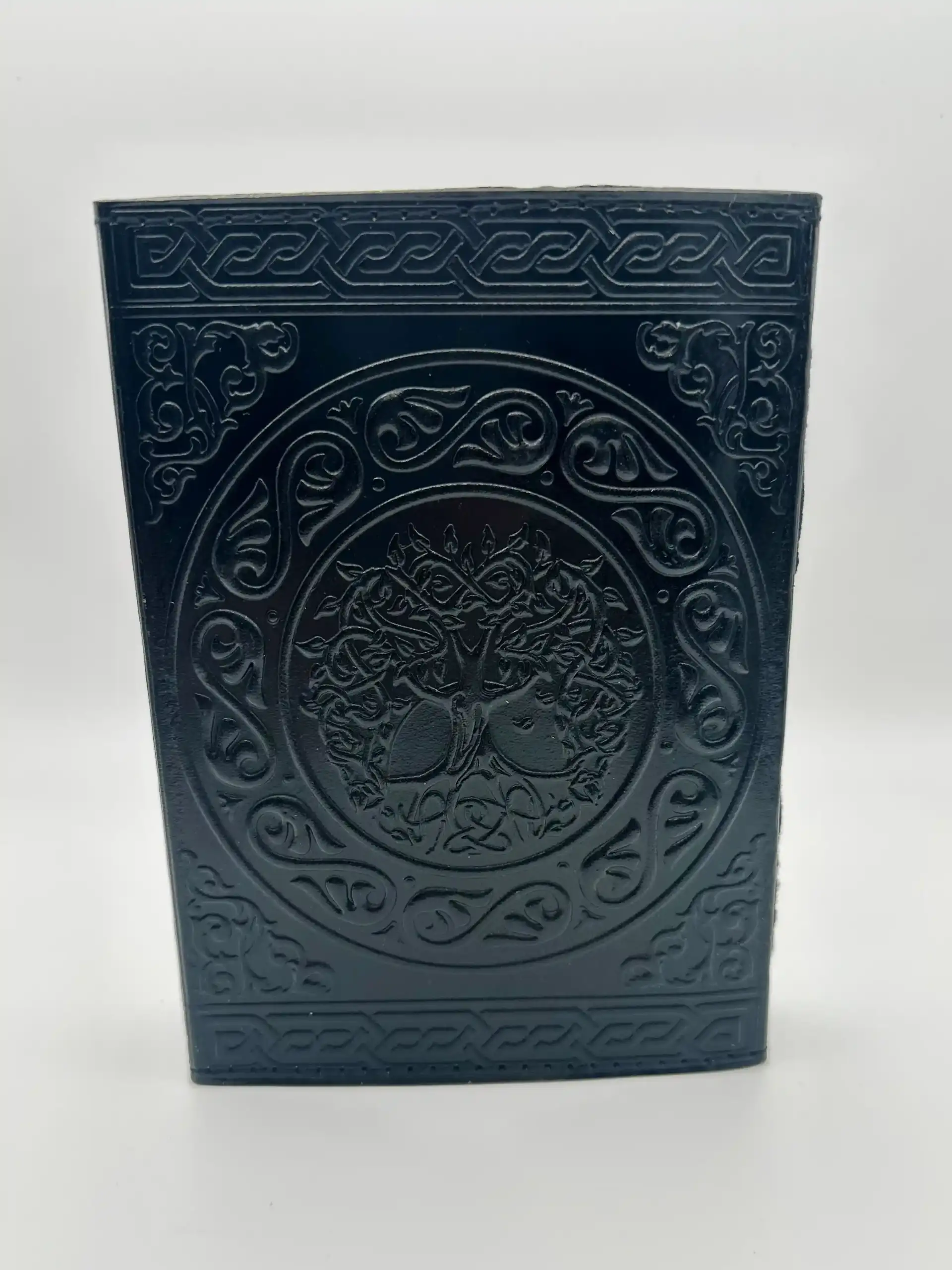 Cuaderno de cuero hecho a mano. Puedes utilizarlo como grimorio, como libro de anotaciones de tus hechizos, para apuntar notas sobre el tarot….