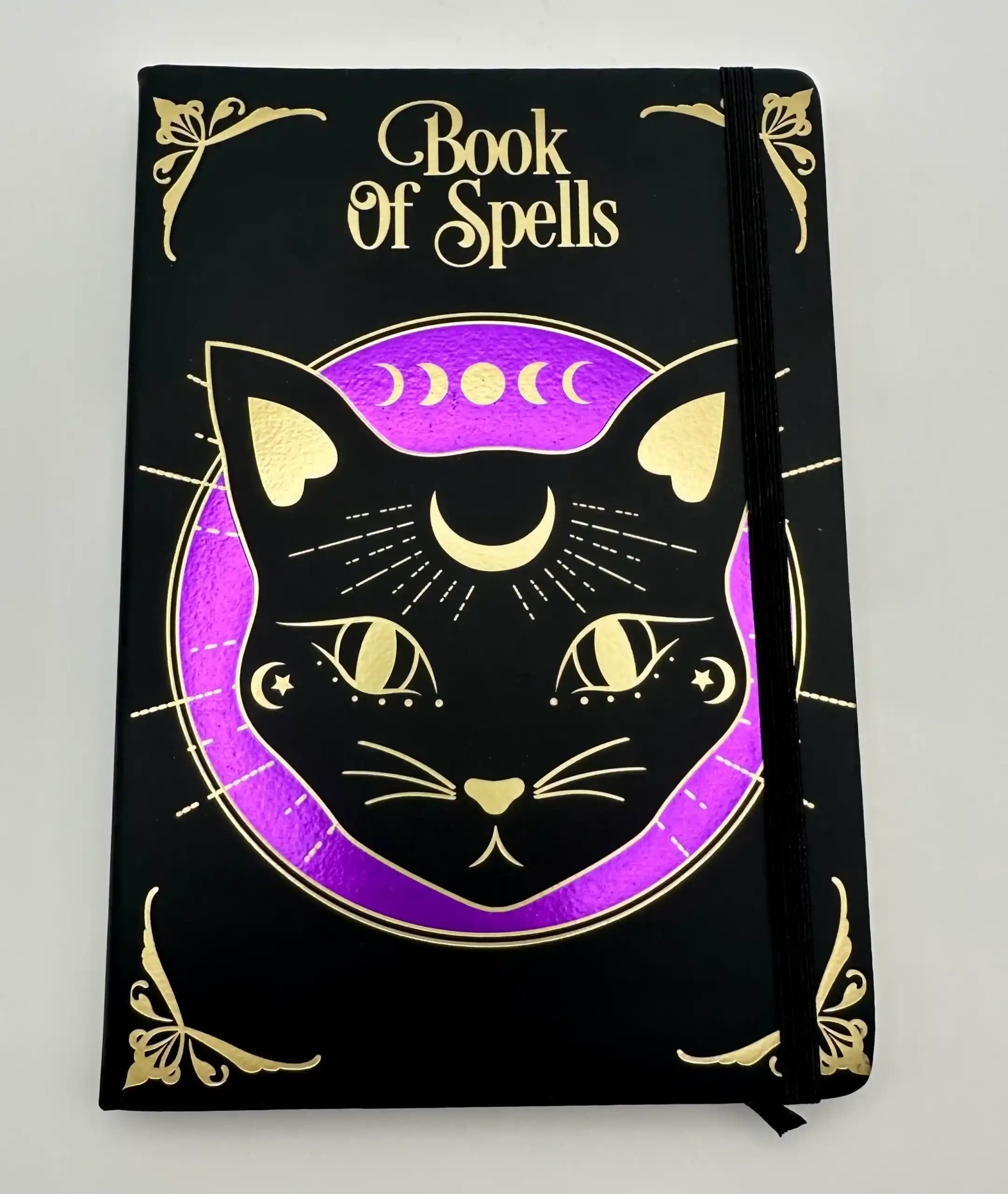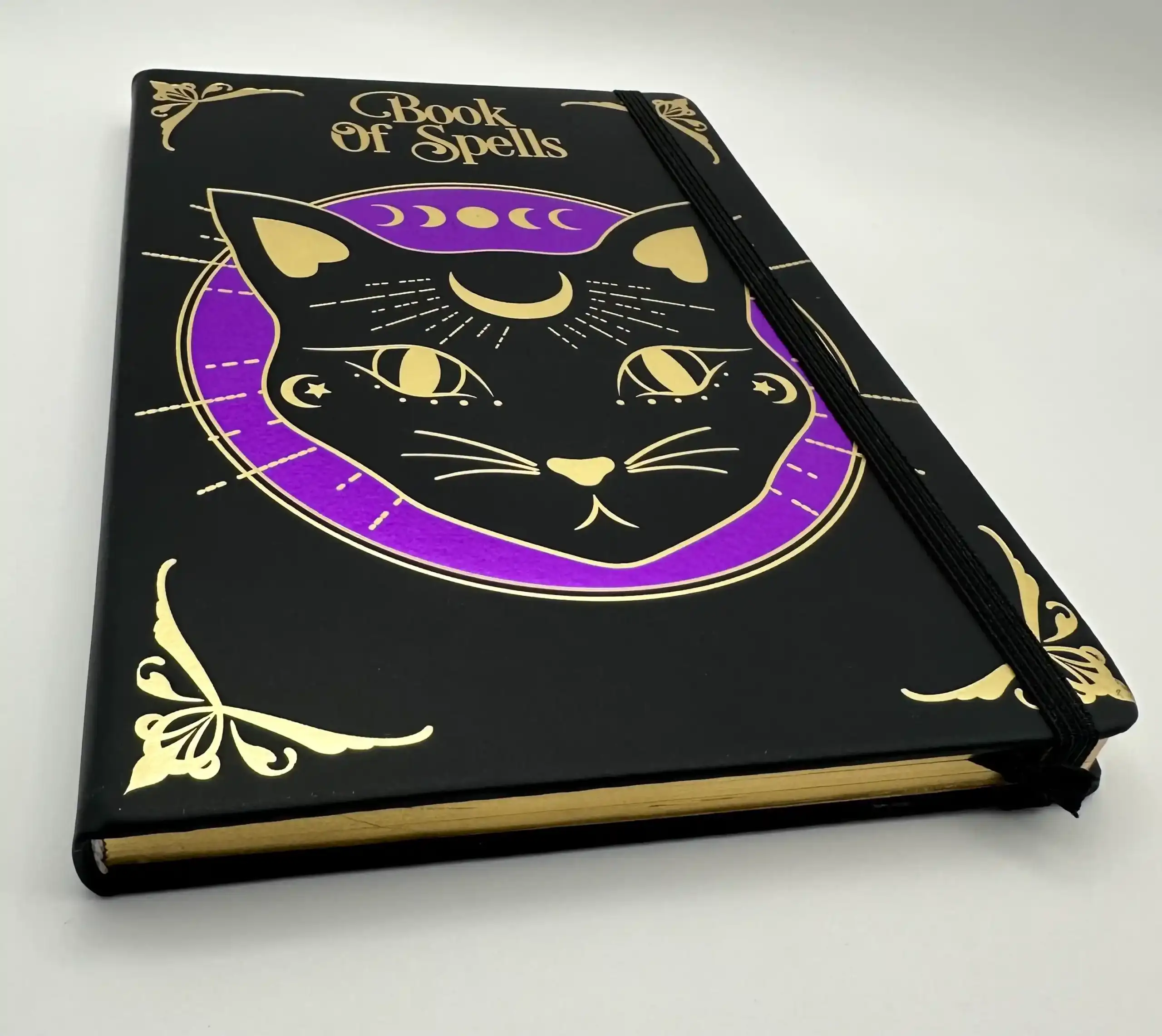 Cuaderno de líneas con dibujo de gato negro y lunas, puedes utilizarlo como grimorio, como cuaderno de apuntes de hechizos, anotaciones del tarot….