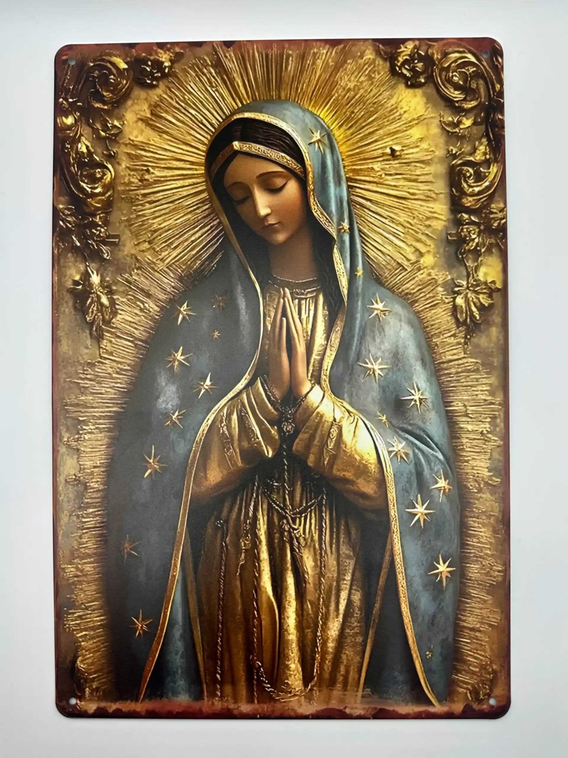Cuadro metálico con imagen de la Virgen de Guadalupe.