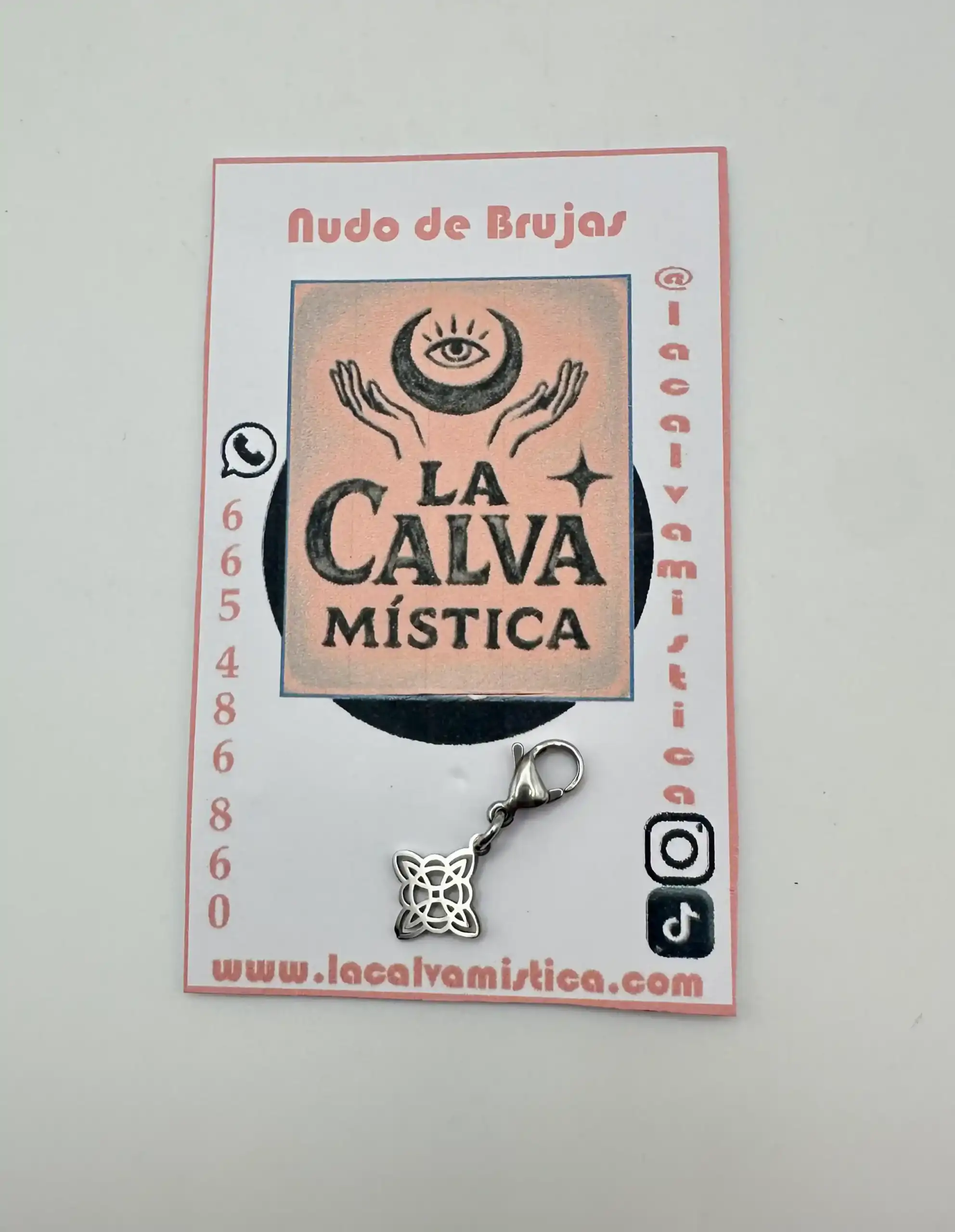 Un dije es una pieza de joyería decorativa que se cuelga de una cadena, en una pulsera o de accesorio en bolsos, carteras, etc… y, además de su función estética, puede tener un profundo significado simbólico, como es en este caso el de Nudo de Bruja que simboliza protección.