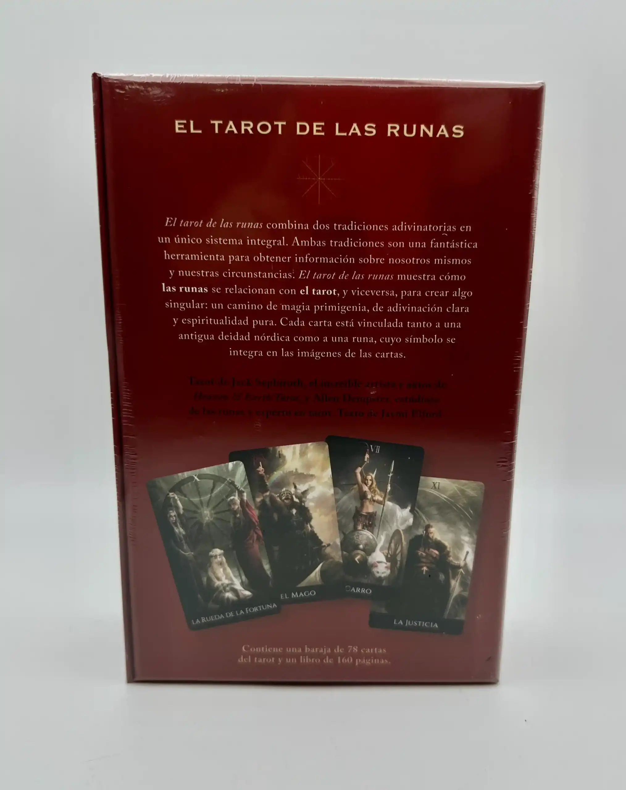 El Tarot de las Runas combina dos tradiciones adivinatorias en un único sistema integral. Ambas tradiciones son una fantástica herramienta para obtener información sobre nosotros mismos y nuestras circunstancias. Este tarot muestra cómo las runas se relacionan con el tarot, y viceversa, para crear algo singular. Cada carta está vinculada tanto a una antigua deidad nórdica como a una runa, cuyo símbolo se integra en las imágenes de las cartas.