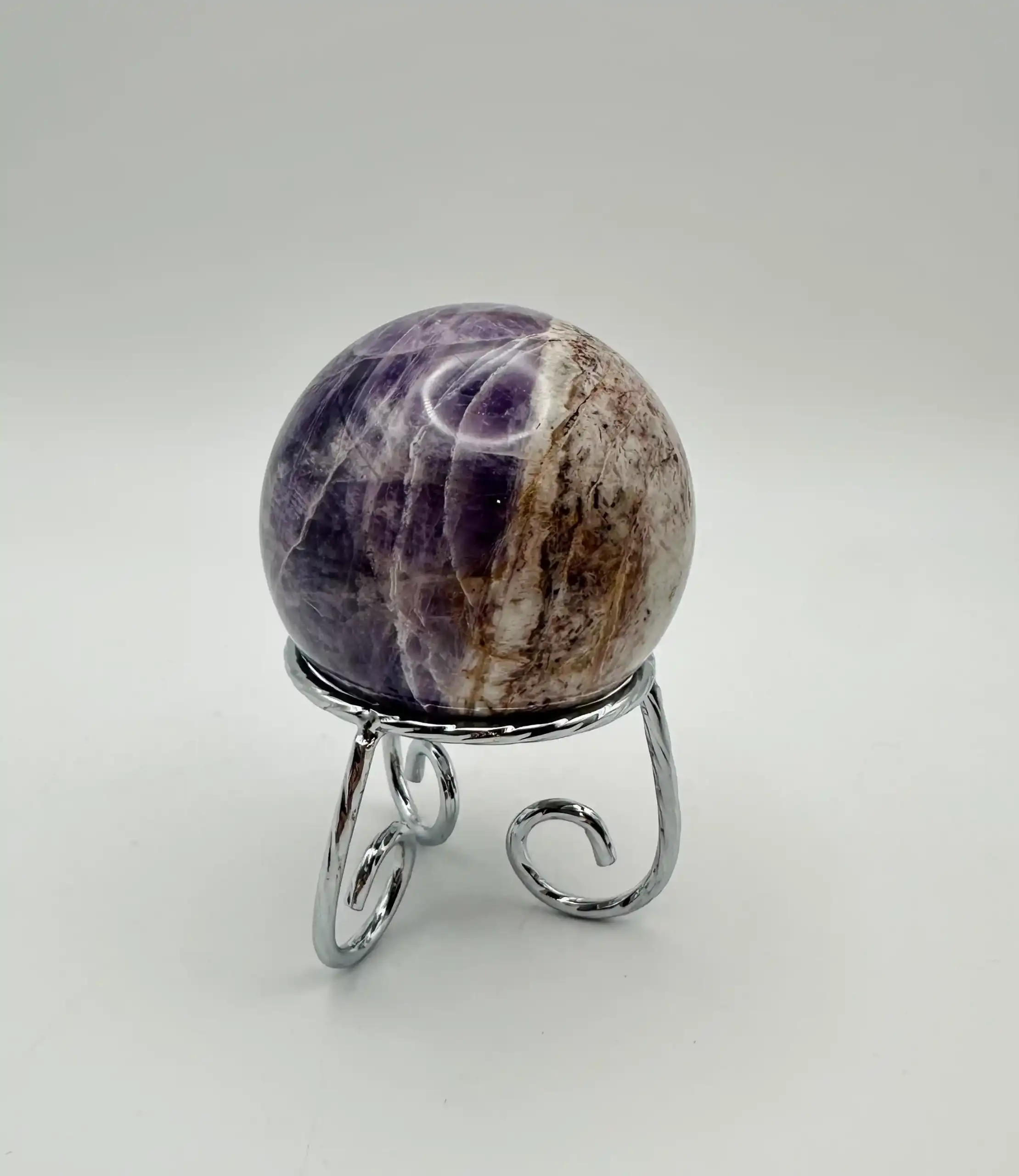 La esfera de amatista se centra en la protección energética, la calma mental y el desarrollo espiritual. Se utiliza para purificar espacios, para la meditación, para equilibrar las emociones y la mente, y se recomienda colocarla en el tercer ojo o debajo de la almohada para mejorar la intuición y el sueño.