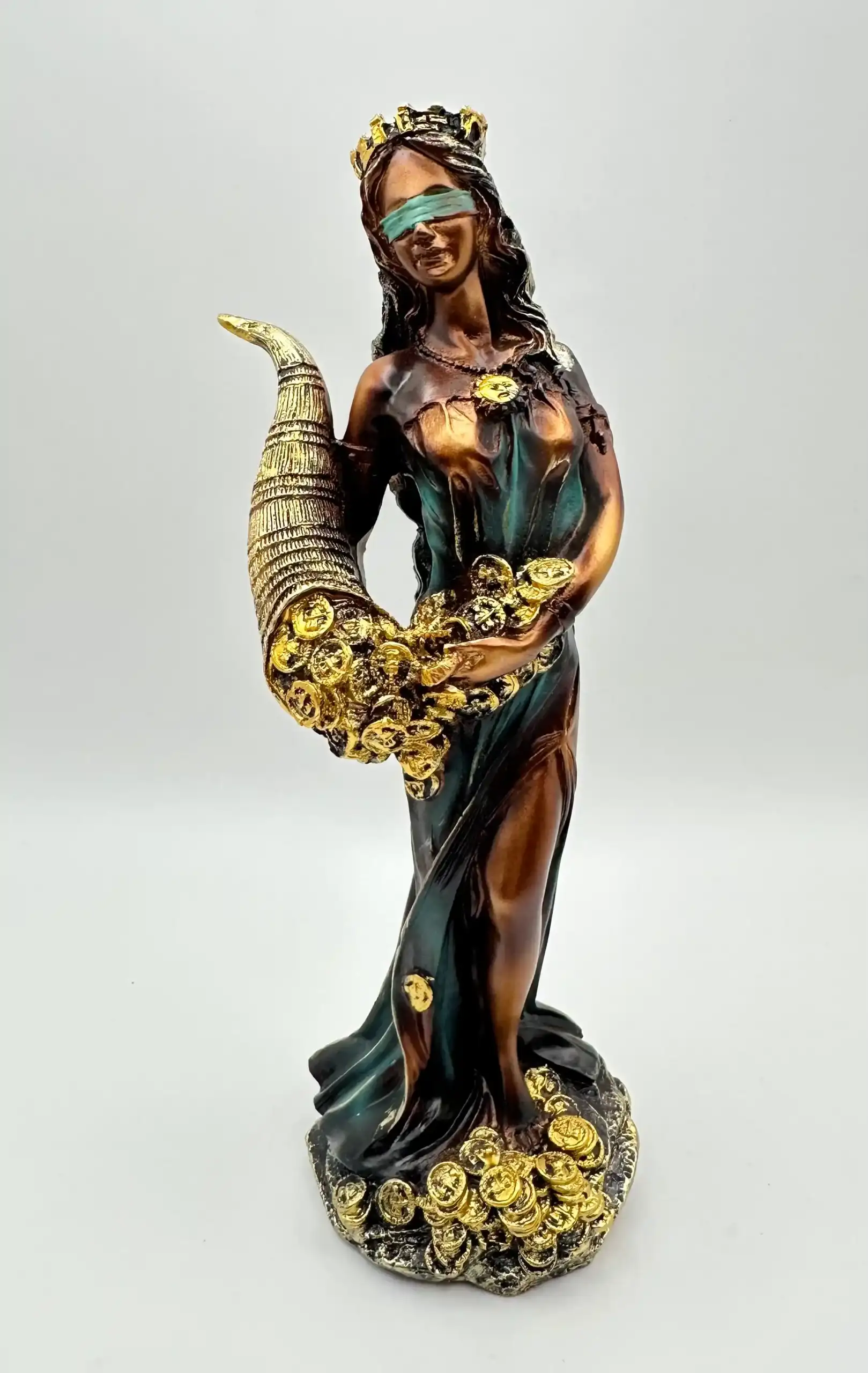 Tiqué, conocida como la diosa de la fortuna y el destino, es una figura que encarna la incertidumbre y el azar de la vida. Se la representa habitualmente con un cuerno de la abundancia, que refleja la prosperidad que puede otorgar.