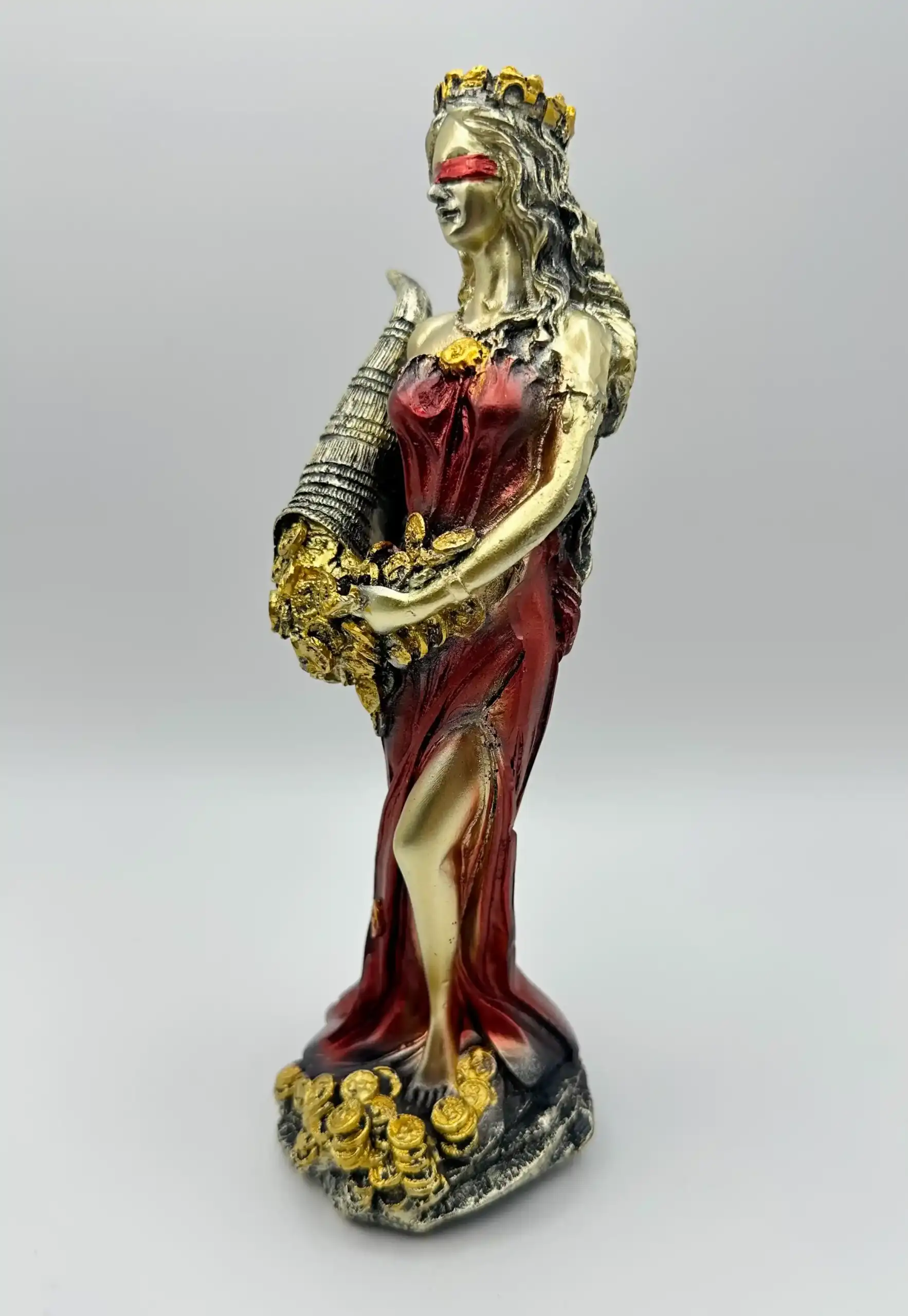Tiqué, conocida como la diosa de la fortuna y el destino, es una figura que encarna la incertidumbre y el azar de la vida. Se la representa habitualmente con un cuerno de la abundancia, que refleja la prosperidad que puede otorgar.