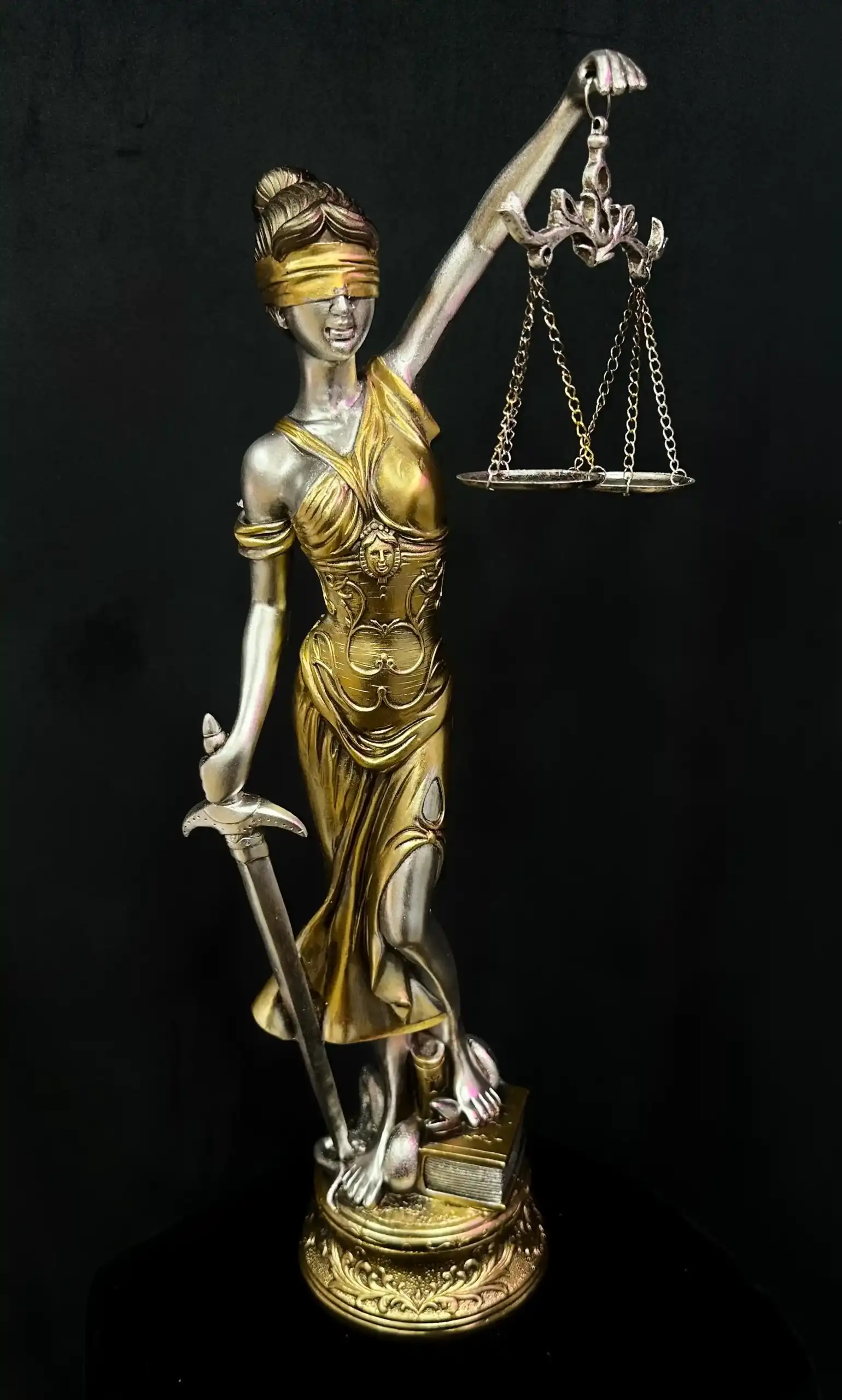Figura Diosa De La Justicia Plateada Y Dorada 55cm