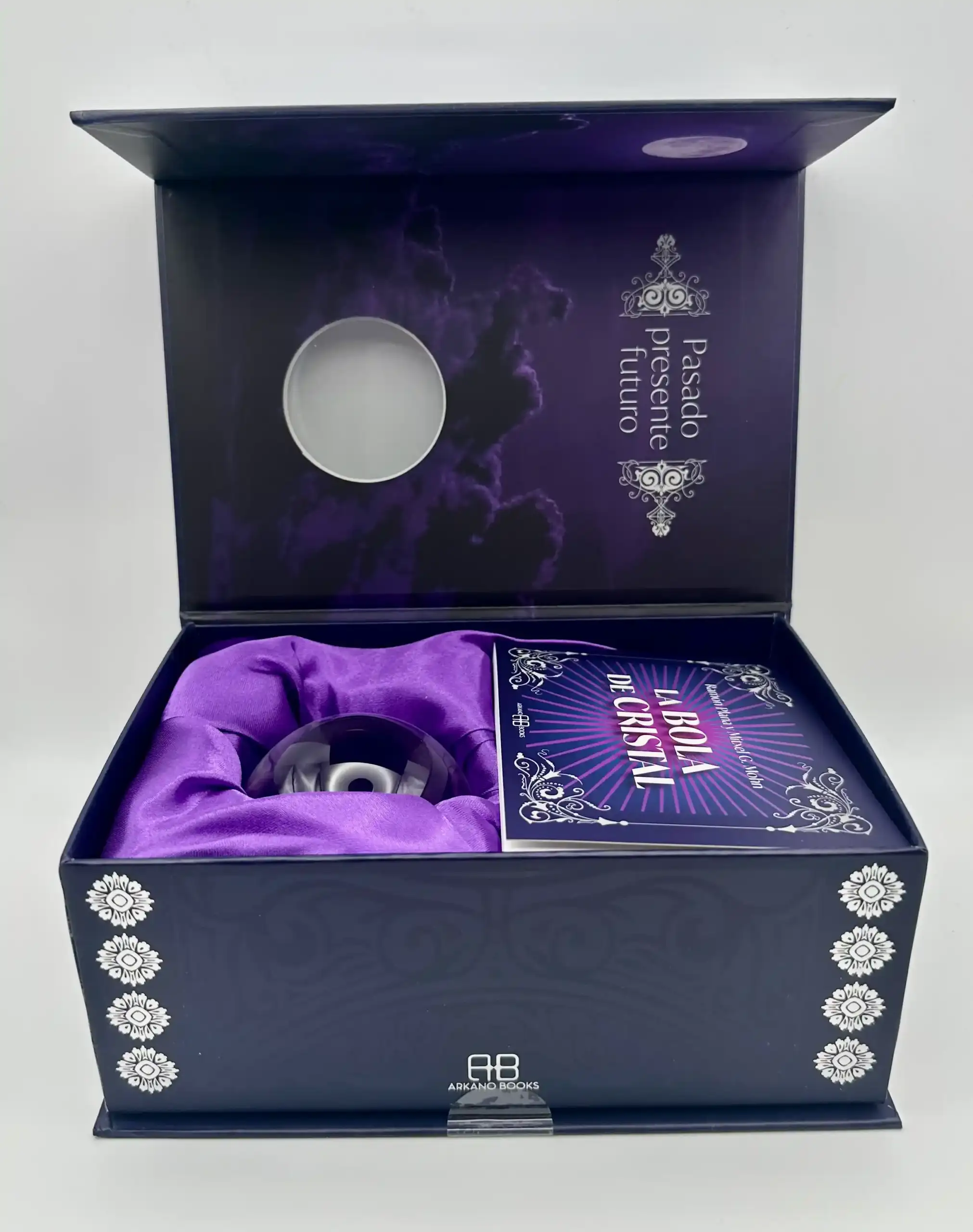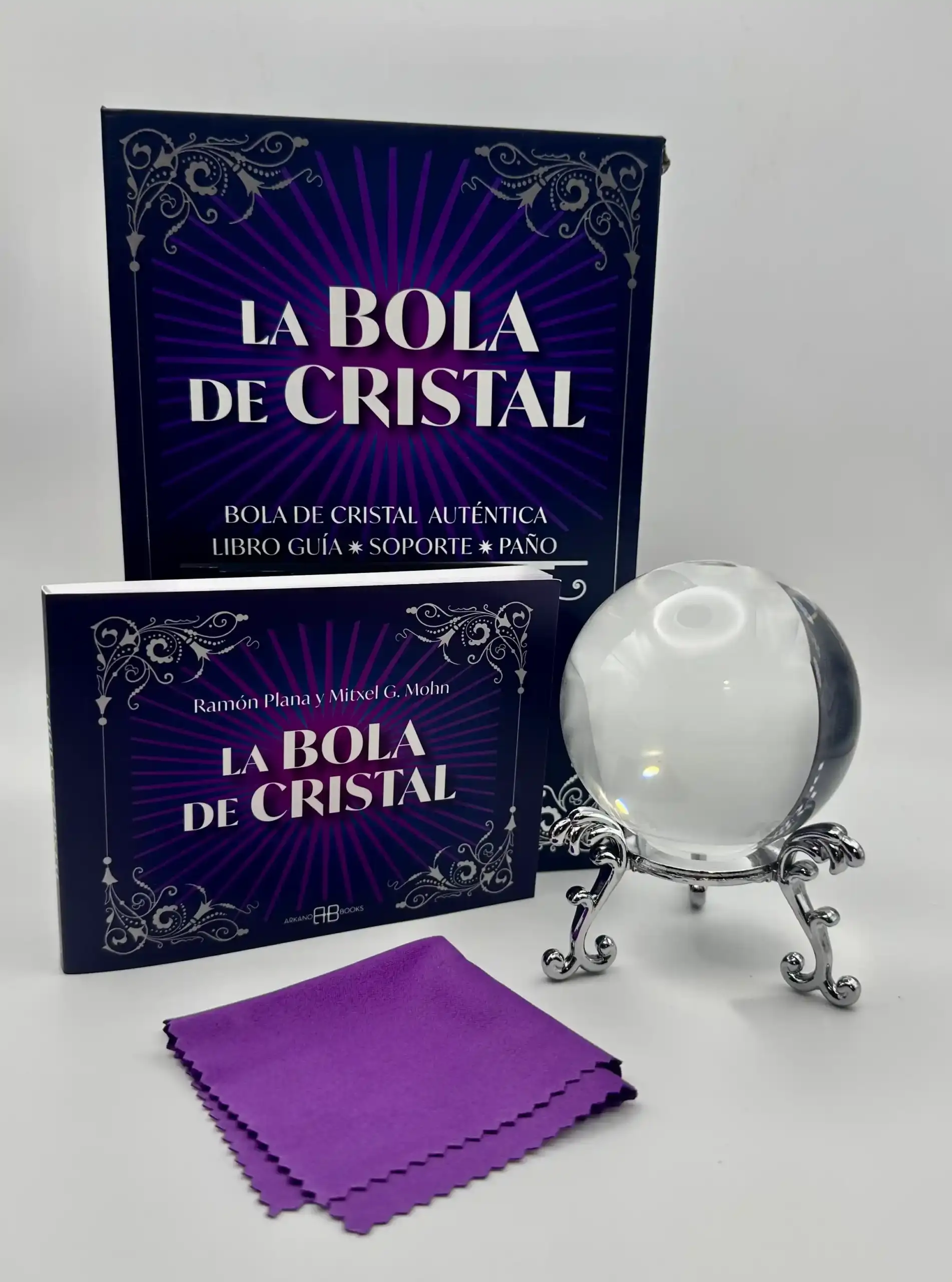 Aprende a usar la bola de cristal con este maravilloso kit que contiene una bola de cristal, su soporte, un pañito para limpiarla y el libro guía para aprender todo lo necesario para empezar con tus lecturas.