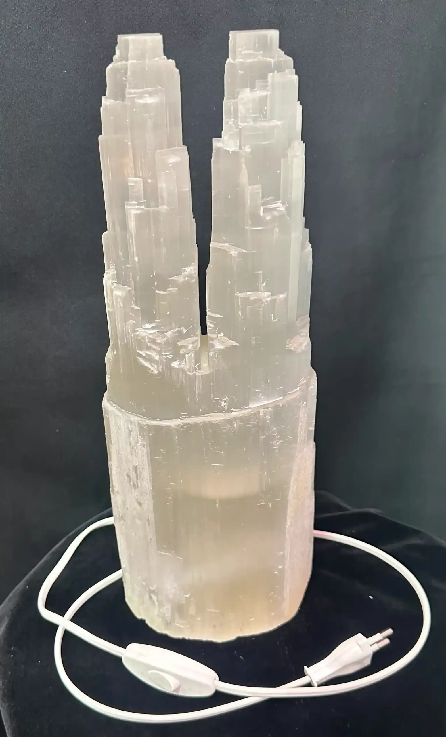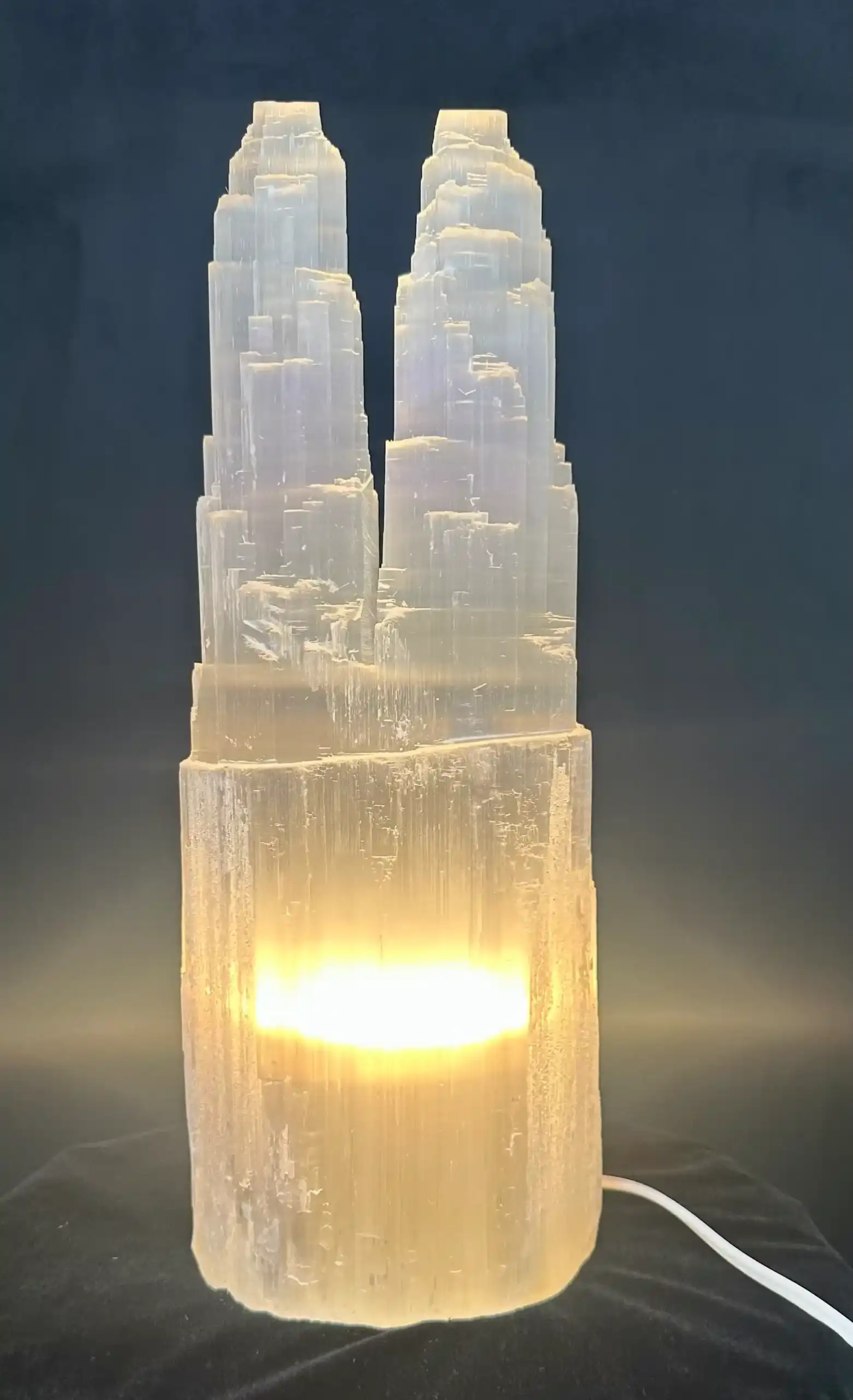 La selenita es conocida como un cristal de claridad, limpieza y conexión espiritual. Su brillo, suave como un rayo de Luna, tiene efectos calmantes y protectores, nos aporta limpieza energética, absorbe y elimina la energía negativa en personas, espacios y otros cristales.
