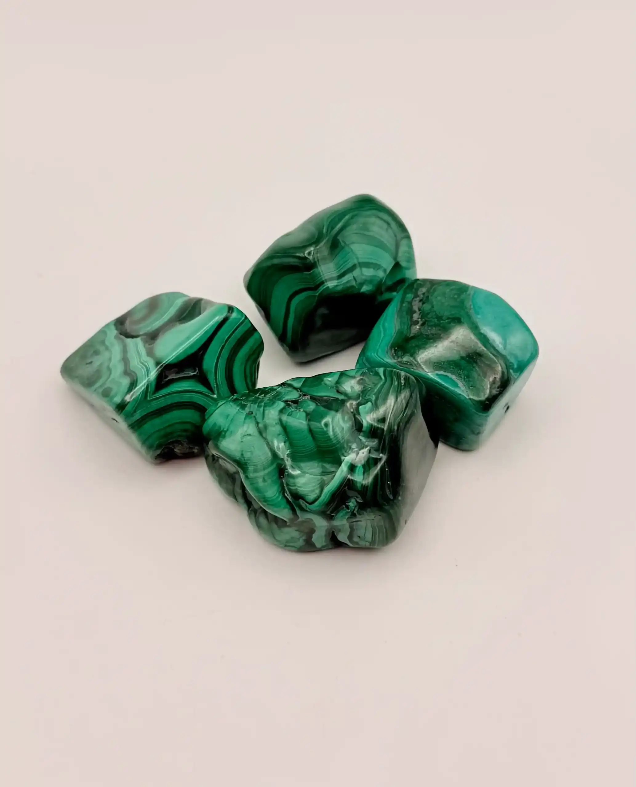 La malaquita se asocia con la transformación, la protección y el equilibrio emocional. Se cree que absorbe energías negativas, protege contra daños y fomenta la confianza, la creatividad y la transformación personal. Se relaciona especialmente con el chakra del corazón, ayudando a liberar bloqueos emocionales y a calmar el alma.