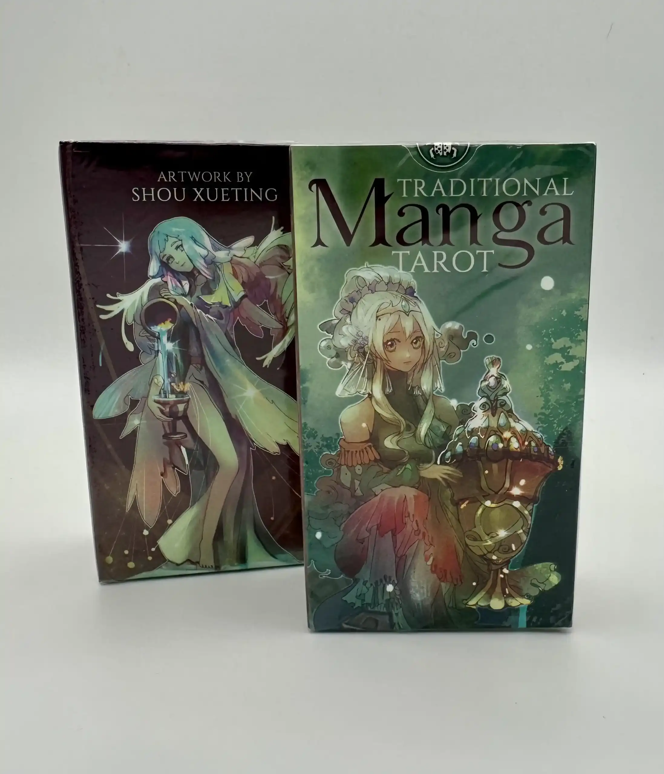 Estas cartas siguen de cerca la simbología tradicional del Tarot mezclado con la pureza del estilo Manga.  El espíritu de la baraja muestra que la tradición es el camino hacia la innovación. 78 cartas e instrucciones del tarot a todo color.
