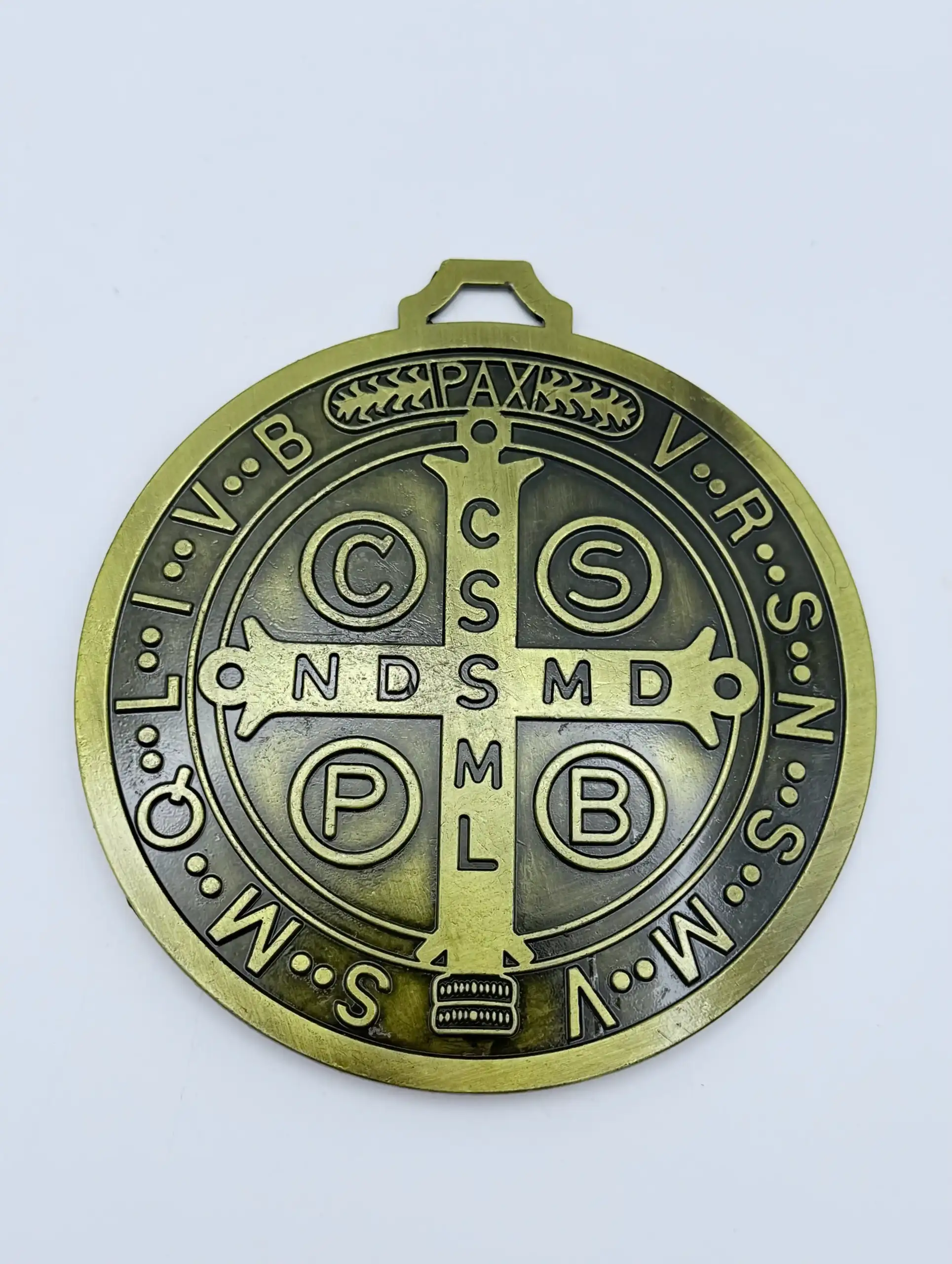 Medalla de San Benito extra grande con ranura para colgar en color bronce.