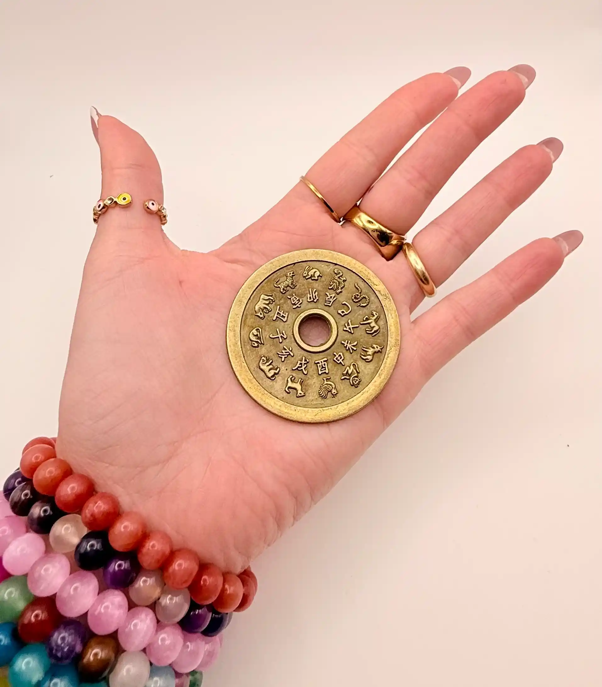 En el Feng Shui, las monedas chinas son símbolos de prosperidad y buena suerte, especialmente en relación con la riqueza.Se utilizan para activar la energía del dinero y se consideran amuletos protectores. Su forma redonda con un agujero cuadrado en el centro representa la armonía entre el cielo y la tierra, y se cree que atraen la fortuna.