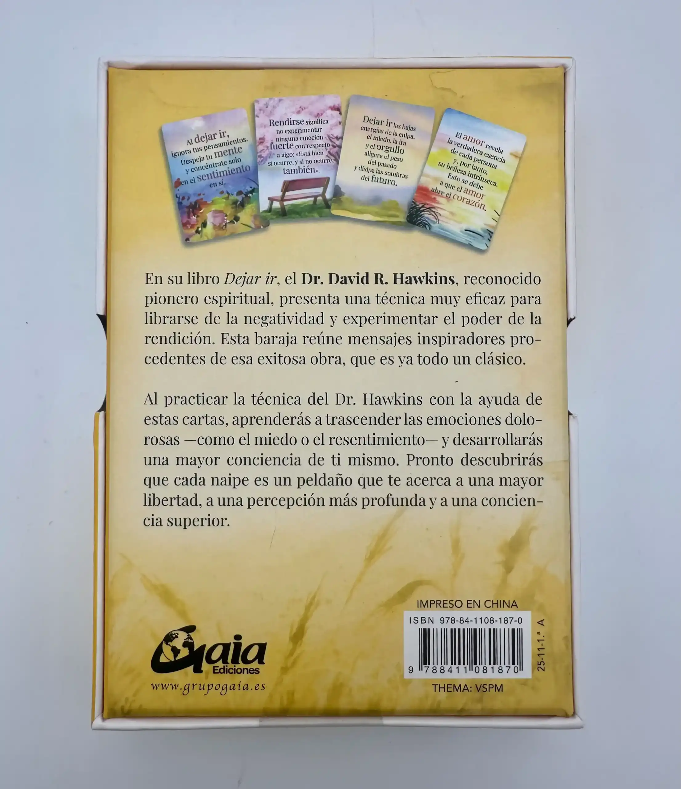 Esta baraja reúne mensajes inspiradores procedentes del exitoso libro Dejar Ir de el Dr. David R. Hawkins. Al practicar la técnica del Dr. Hawkins con la ayuda de estas cartas, aprenderás a trascender las emociones dolorosas (como el miedo o el resentimiento) y desarrollarás una mayor conciencia de ti mismo. Pronto descubrirás que cada naipe es un peldaño que te acerca a una mayor libertad, a una percepción más profunda y a una conciencia superior.