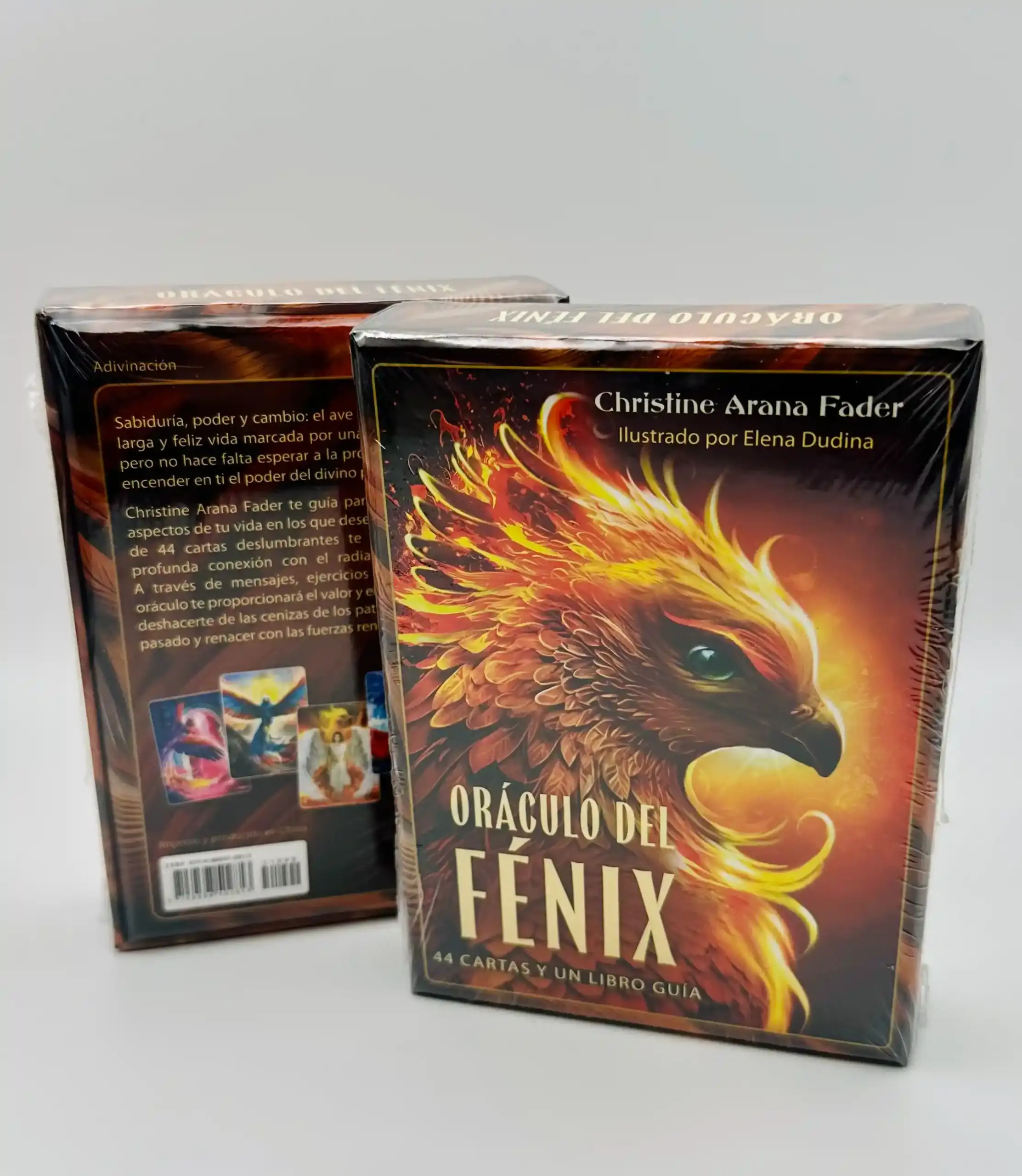 El Oráculo del Fénix está compuesto por 44 cartas y un libro guía, enfocado en el renacimiento, la transformación y la sanación. Utiliza la simbología del Fénix para ayudar a liberar patrones antiguos, conectar con la fuerza interior y renacer fortalecido. Incluye 39 cartas del Fénix que representan la dualidad entre la gentileza y la ferocidad, la sanación y el poder; además, trae cuatro cartas del Pegaso elemental y una carta maestra.