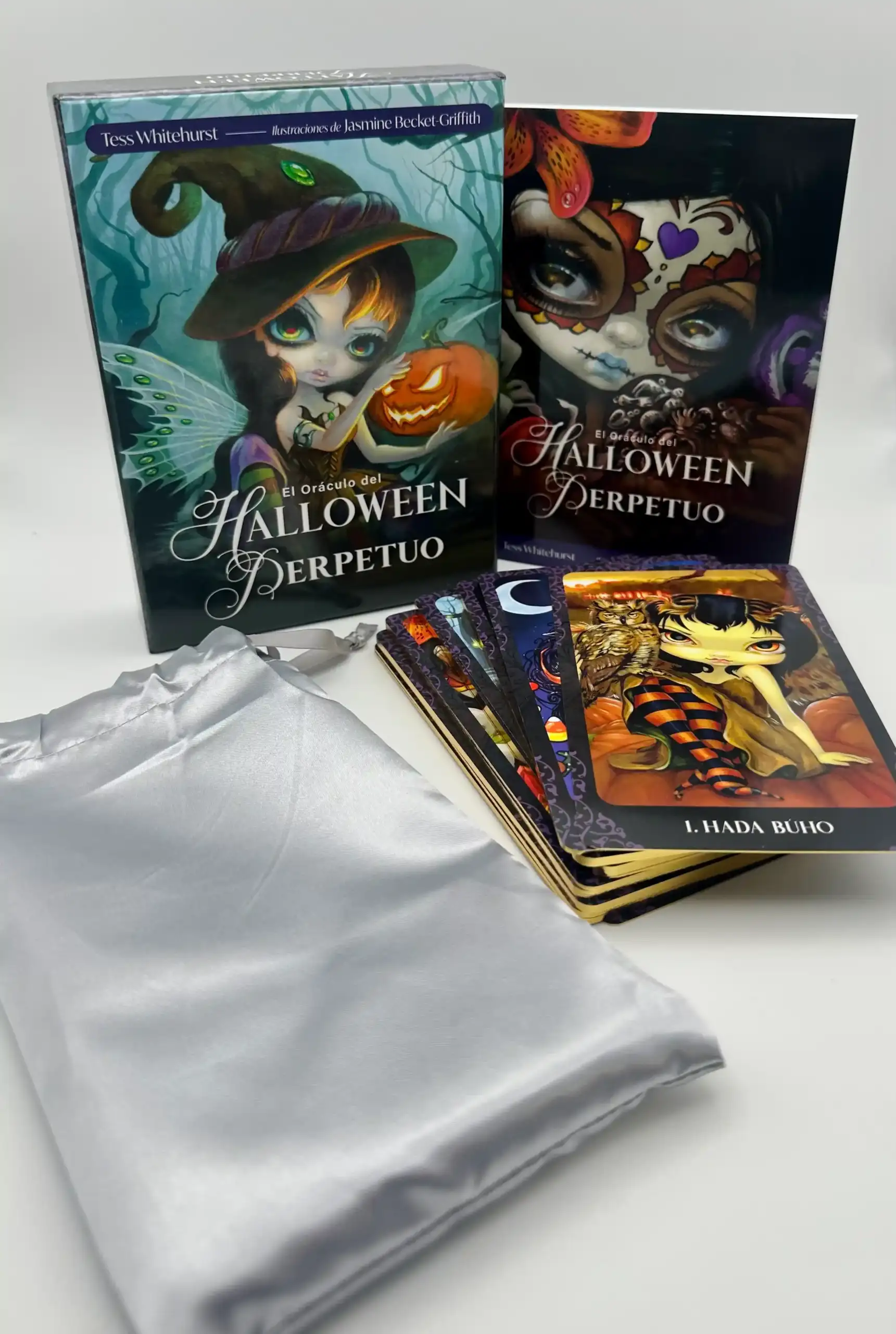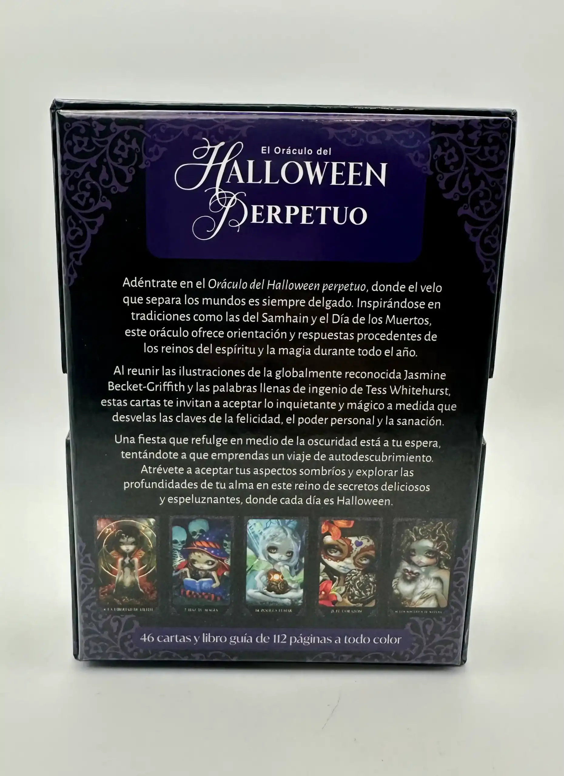 El Oráculo del Halloween Perpetuo es una herramienta de adivinación que se inspira en las festividades de Samhain y el Día de Muertos. Utiliza cartas con ilustraciones de Jasmine Becket-Griffith y textos de Test Whitehurst para ofrecer guía y respuestas durante todo el año, invitando a explorar la oscuridad personal y buscar sanación y autoconocimiento a través de la magia y el misterio del Halloween perpetuo. Proporciona orientación y respuestas espirituales durante todo el año, ayudando a encontrar la felicidad, el poder personal y la sanación.