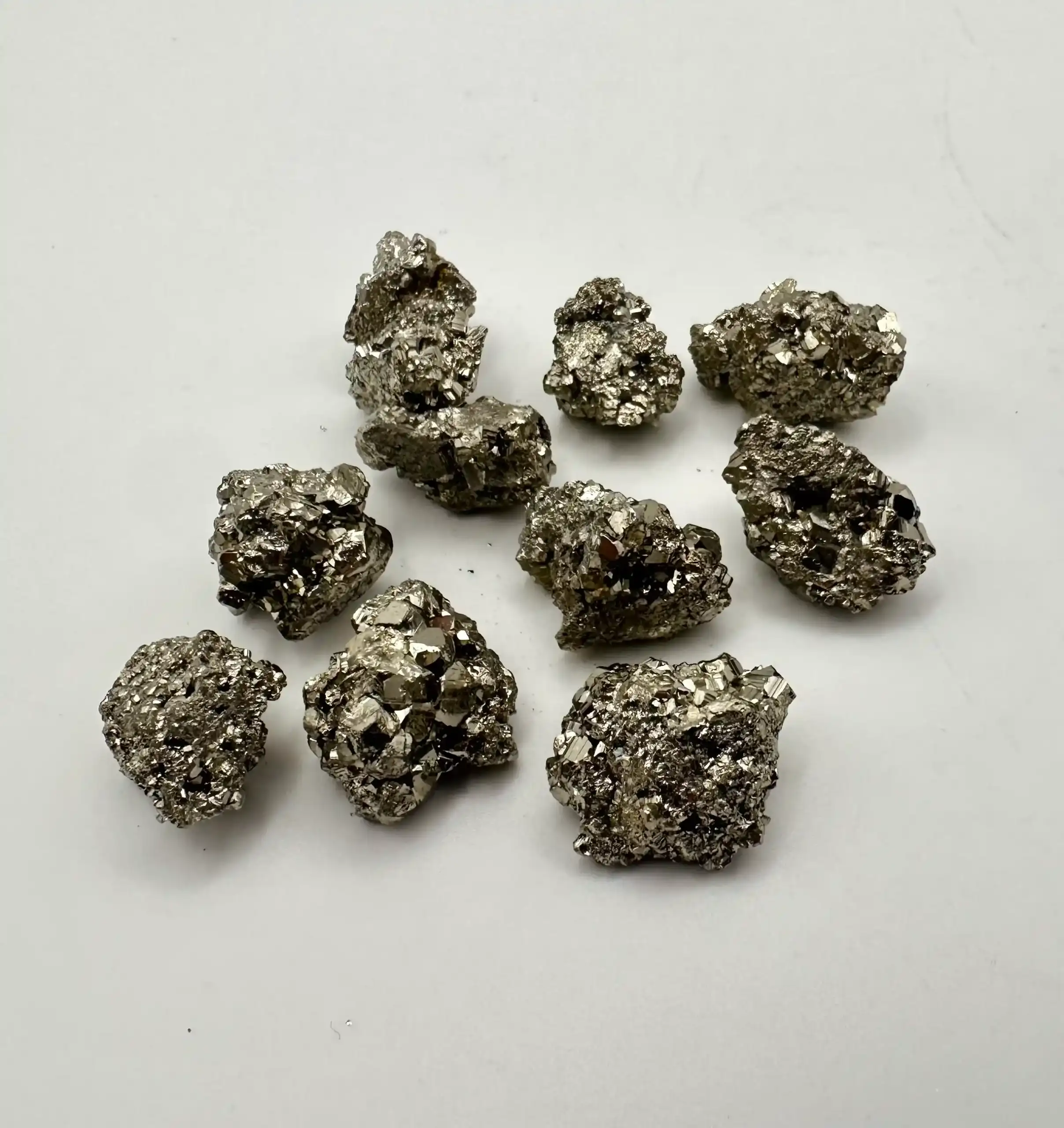 La pirita es conocida como la piedra del dinero o del éxito. Su color dorado actúa como un imán para la prosperidad económica, atraer la riqueza y evitar fugas de capital.