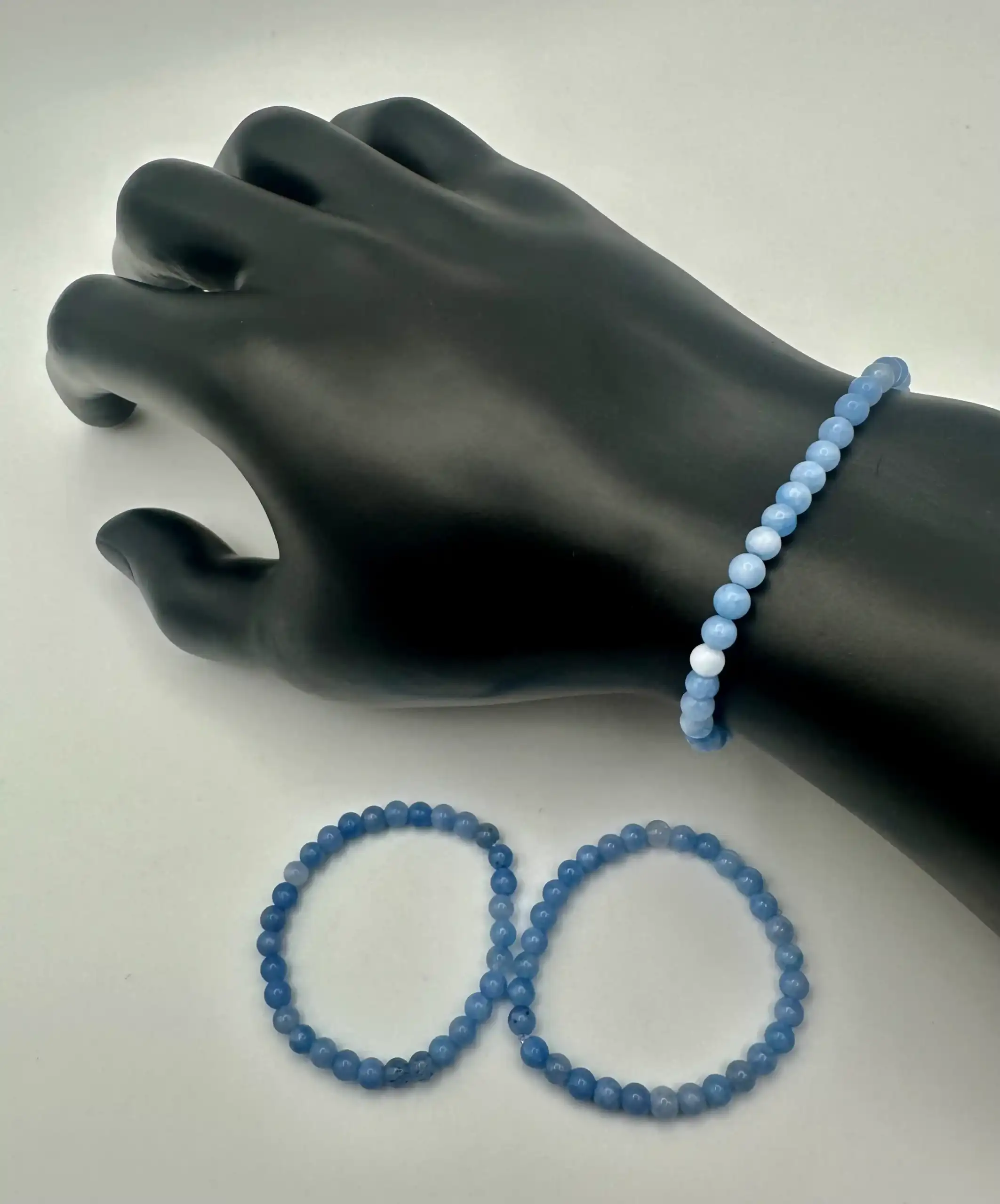 Pulsera infantil de aguamarina natural, ideal para aportar calma, serenidad y equilibrio emocional a los niños. Su suave color azul transmite tranquilidad y frescura, mientras que su diseño ligero y delicado la hace cómoda y agradable para el uso diario, perfecta para acompañarlos en cualquier momento del día.