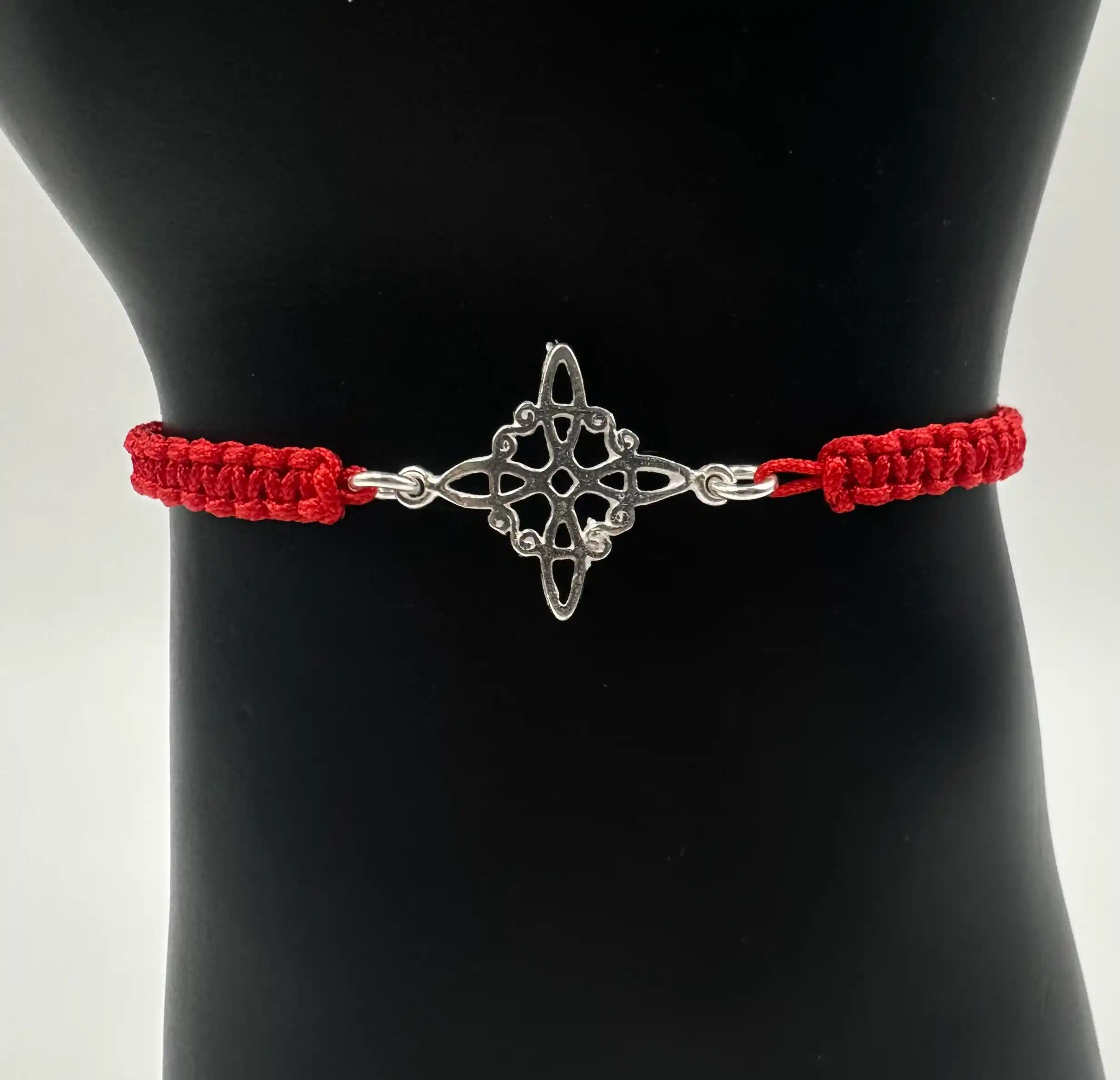 Pulsera Macrame Rojo Nudo De Bruja Plata De Ley