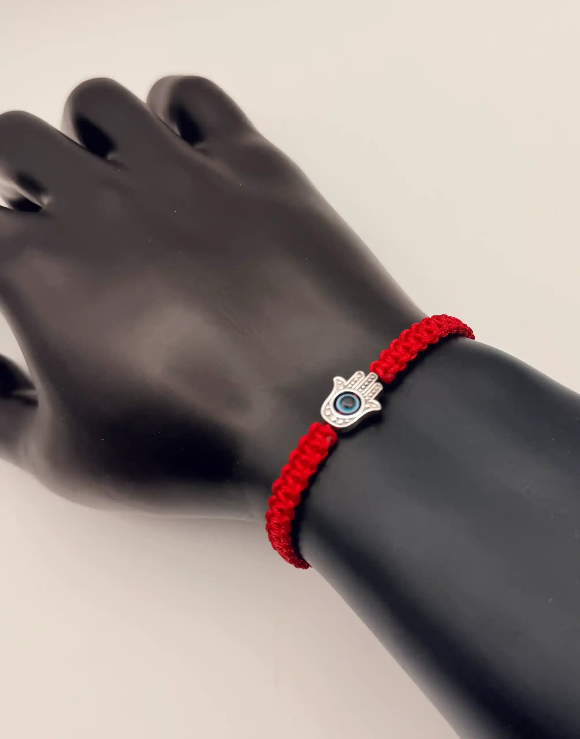 Esta pulsera está elaborada con macramé de hilo rojo, reconocido por su poder protector y su capacidad para alejar las malas energías. Contiene la mano de Fátima que es un símbolo poderoso de protección, buena suerte y fortaleza espiritual.
