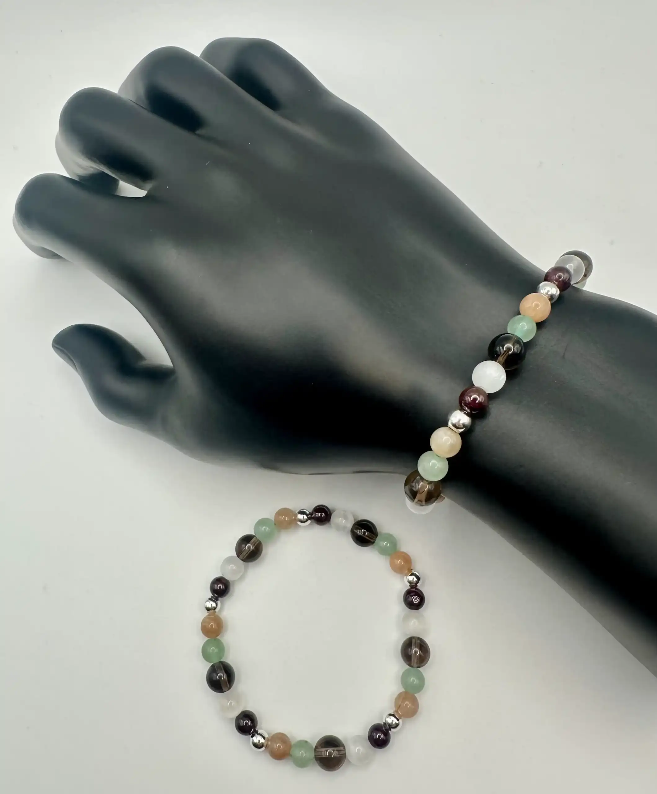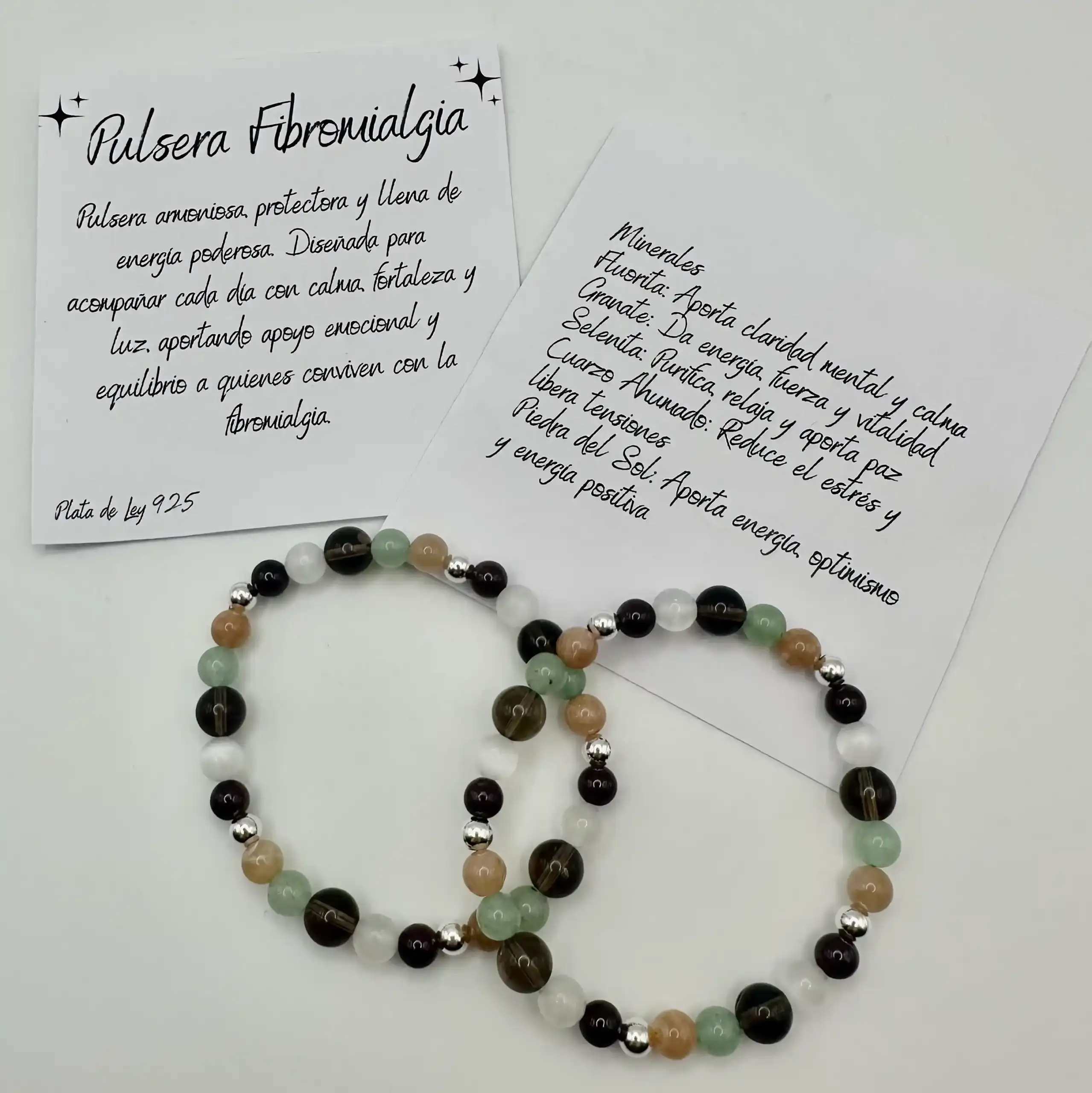 Esta pulsera combina varios minerales que combinados nos aportan claridad mental, calma, nos da energía, fuerza y vitalidad. Purifica, relaja y aporta paz, reduce el estrés y libera tensiones. Aporta optimismo y energía positiva.