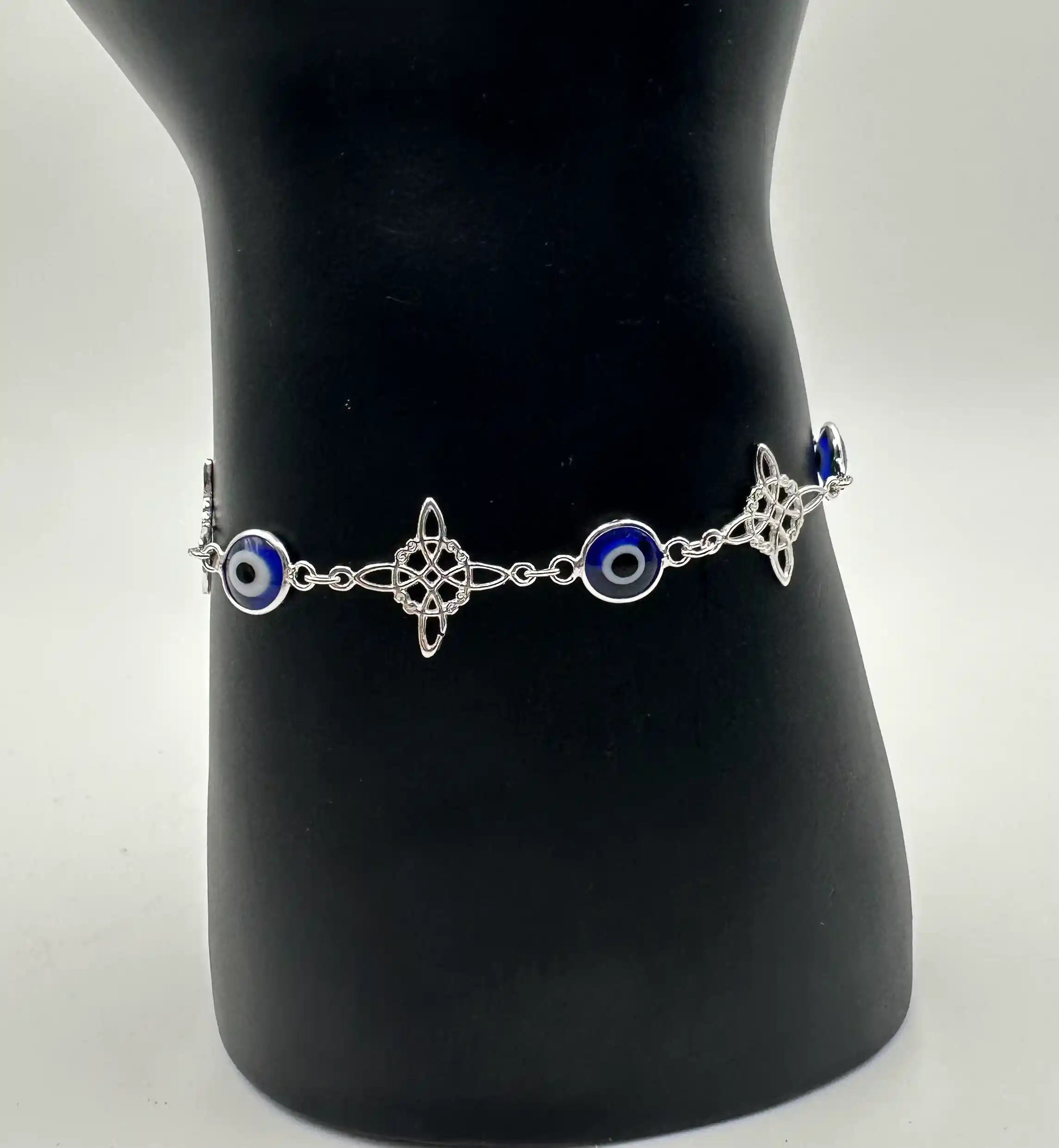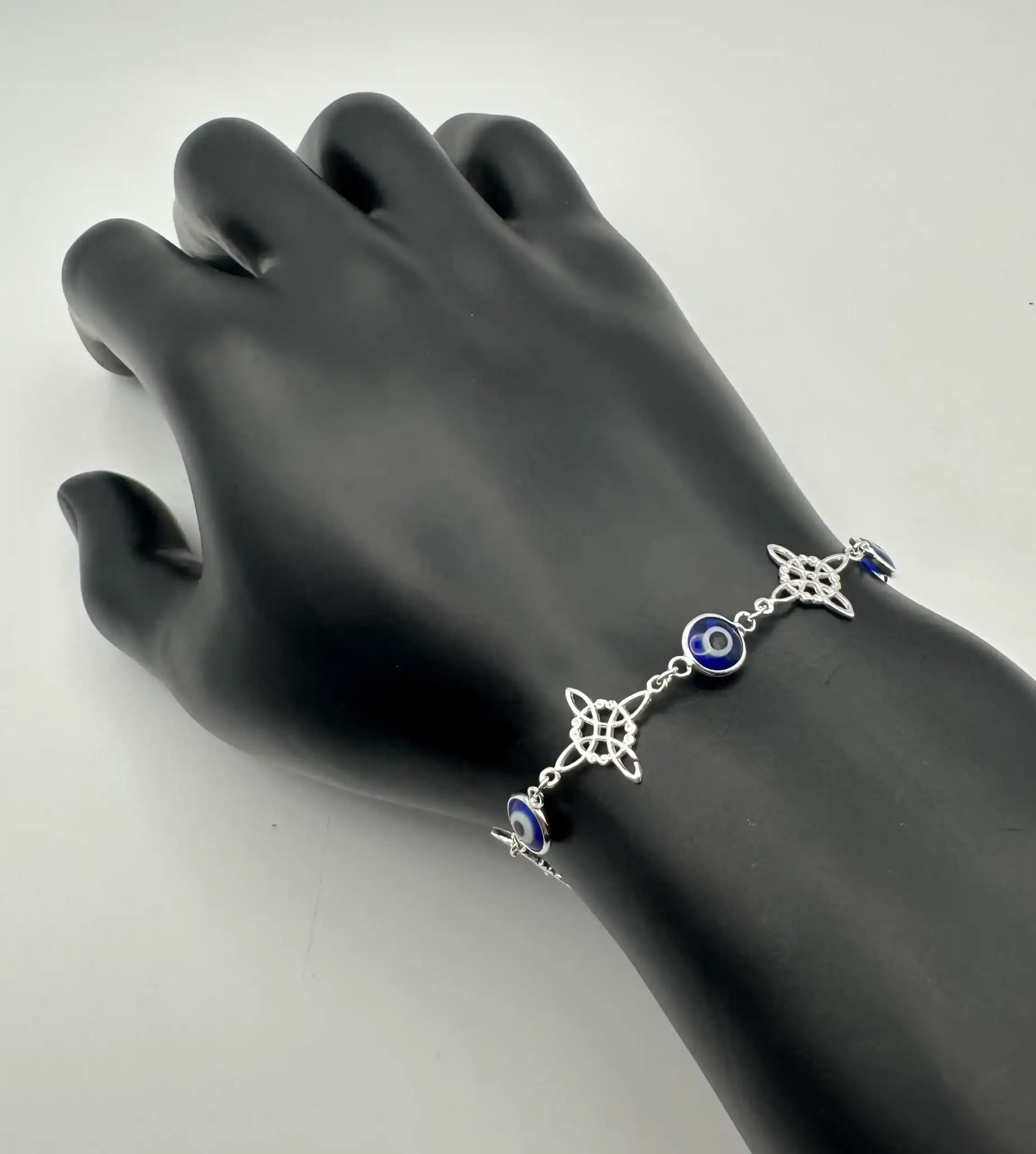 Pulsera Nudos De Bruja Y Ojos Turcos Plata De Ley