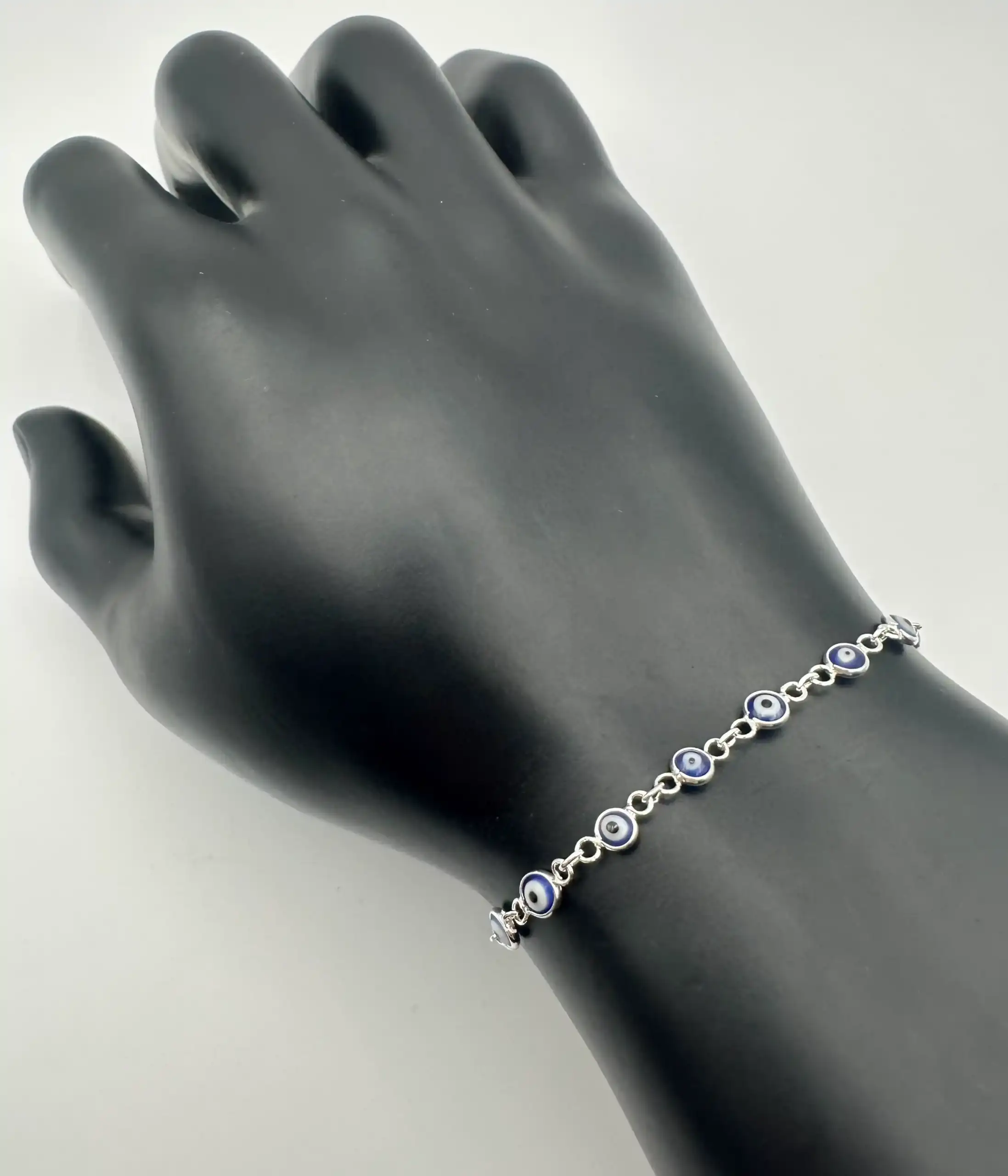 Pulsera Ojos Turcos Pequeños Plata De Ley