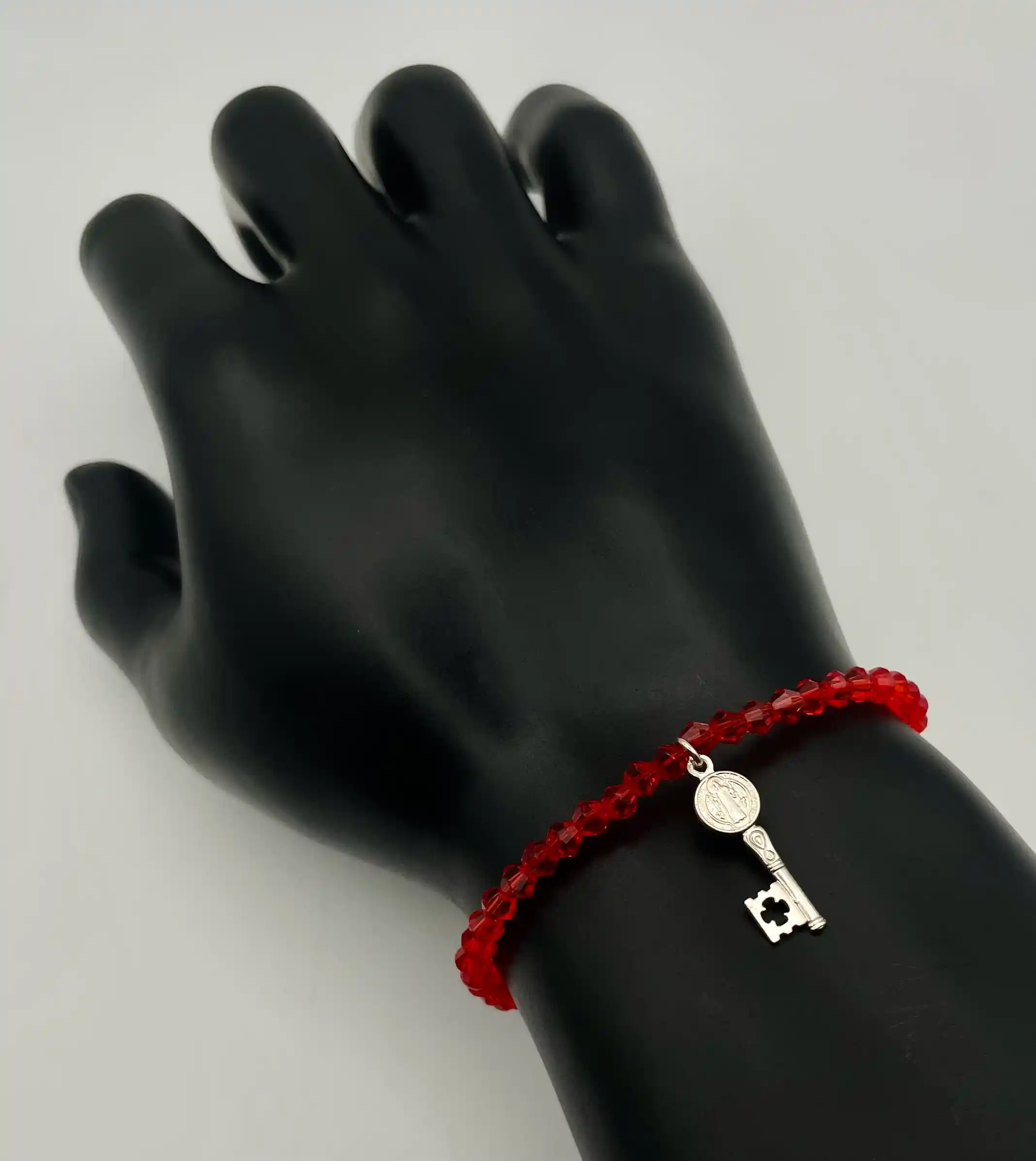 Pulsera roja contra el mal de ojo con colgante abre caminos LLAVE DE SAN BENITO