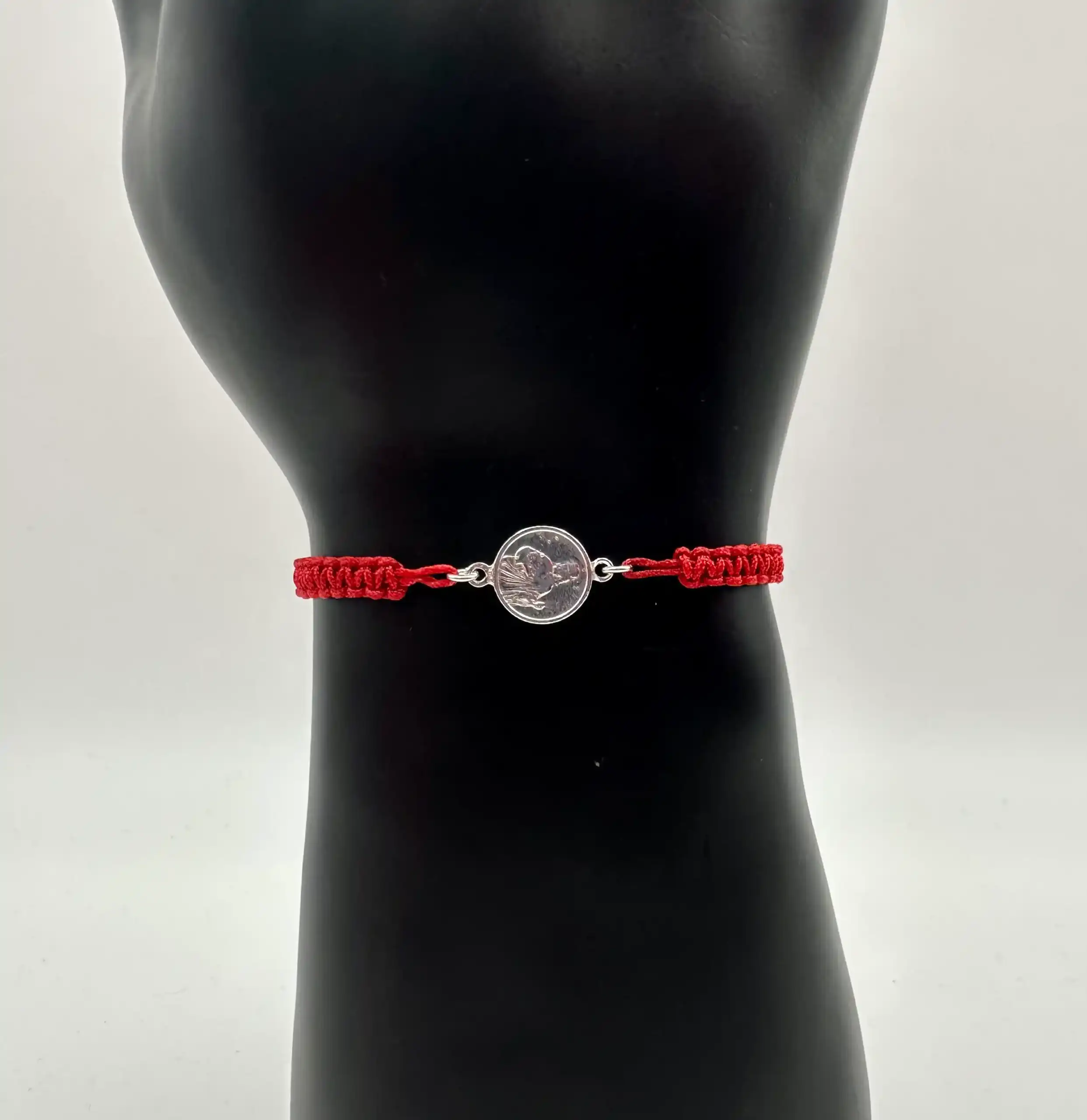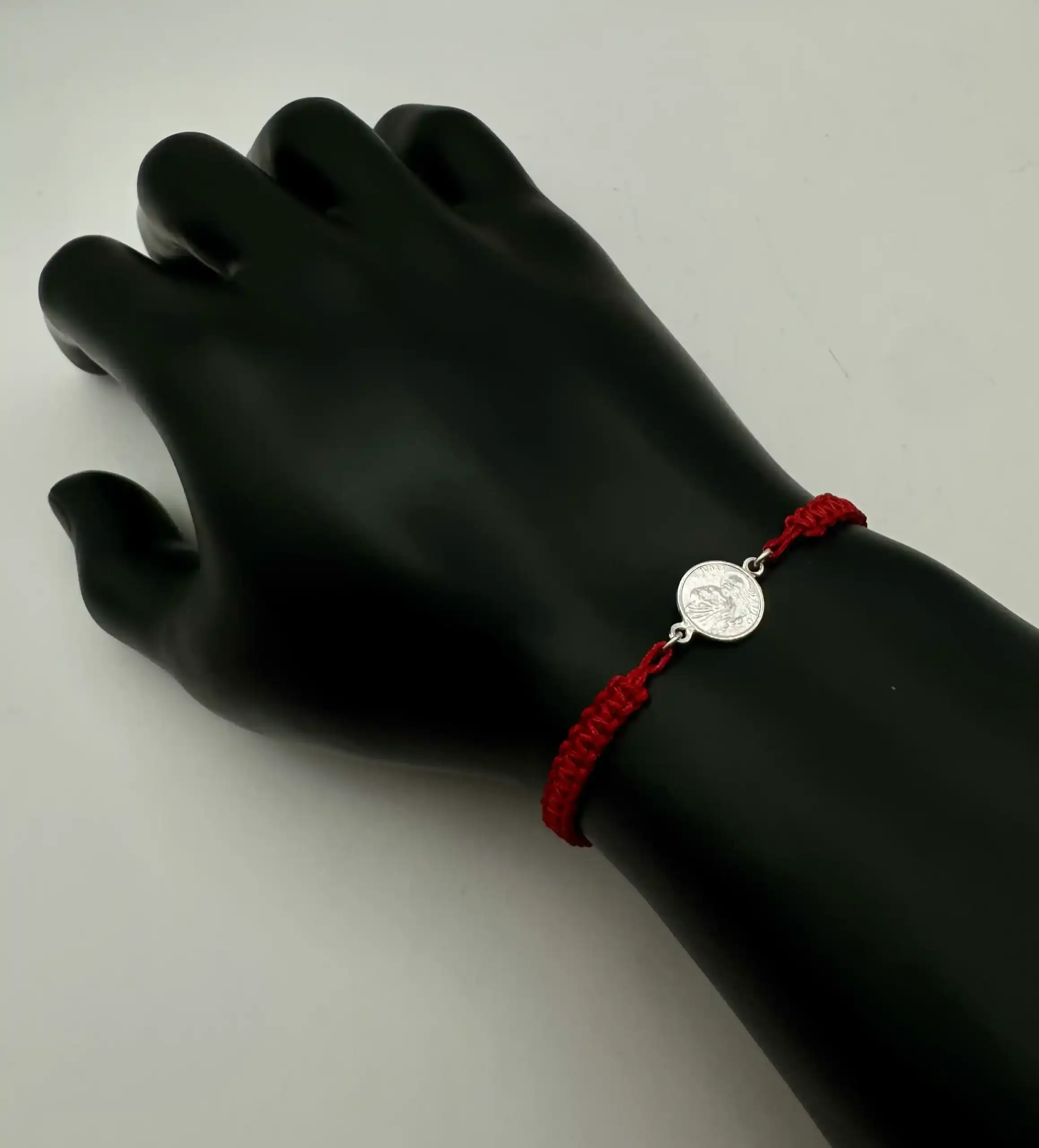 Pulsera Roja Macrame Con San Judas Tadeo Plata De Ley